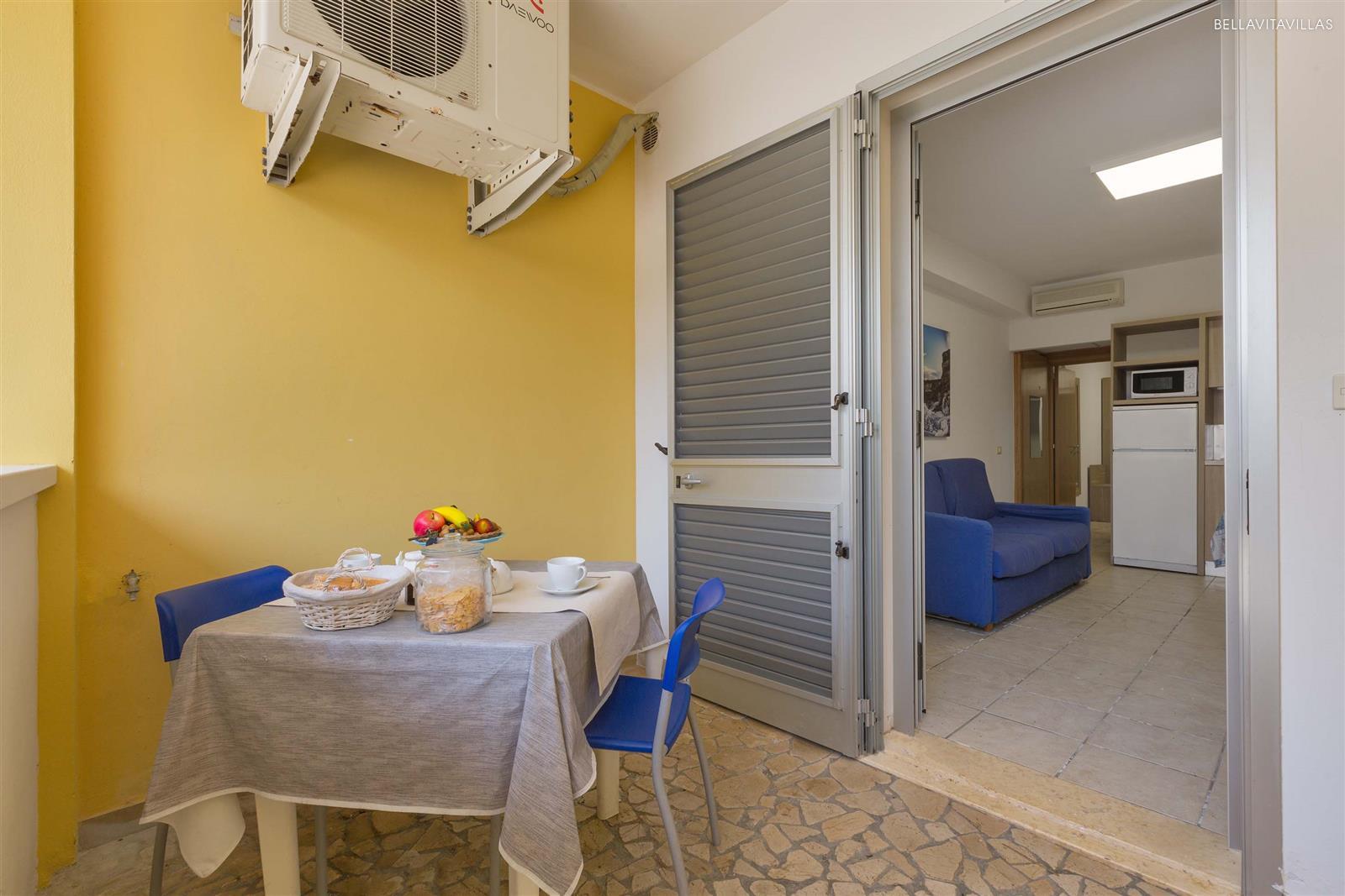 The rooms are basic but cozy and bright and consist of a living room with air conditioning, kitchenette, 1 double sofa bed and dining table. The corridor divides the living room from the sleeping area which consists of a double bedroom with air conditioning and access to a small porch and a full bathroom.