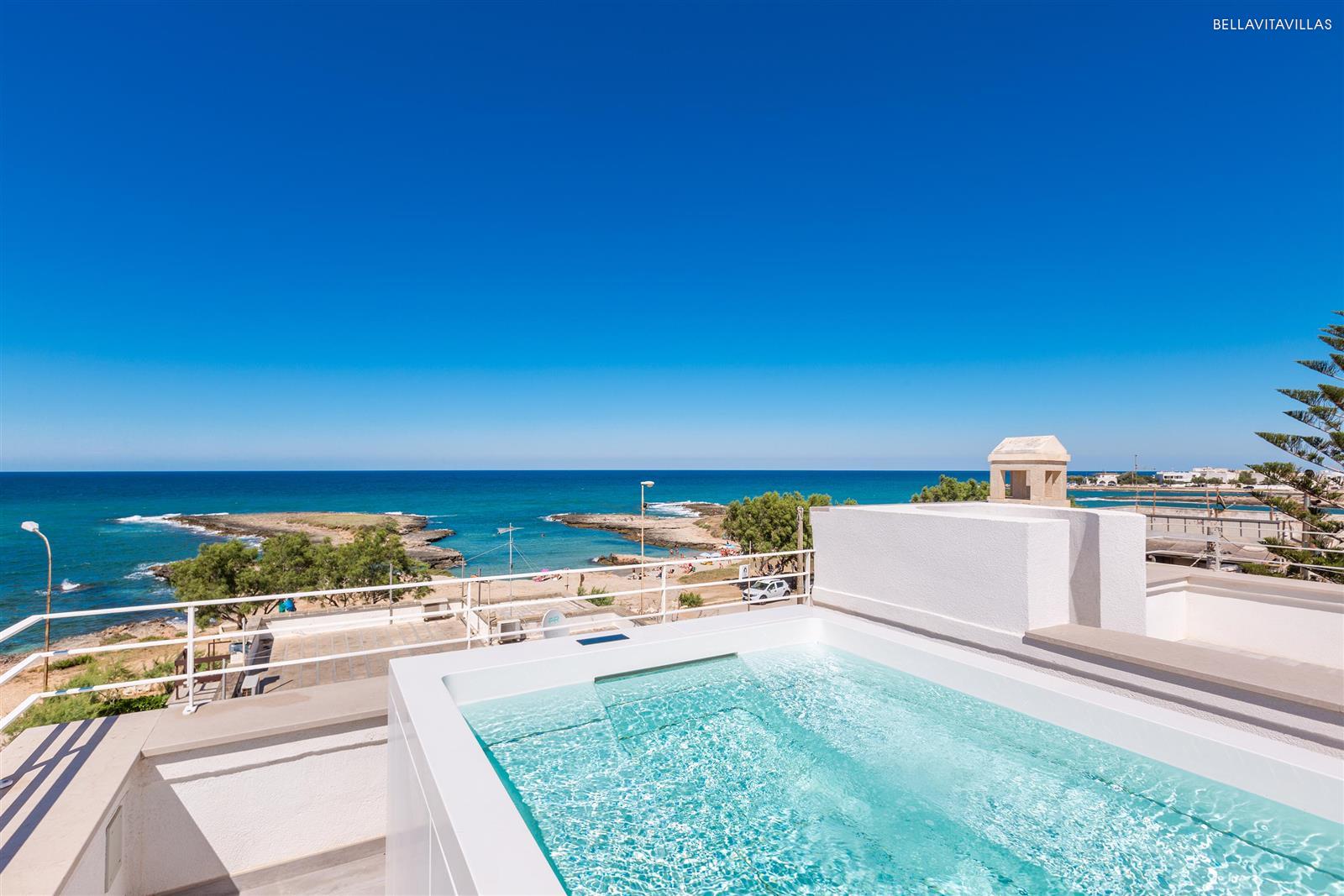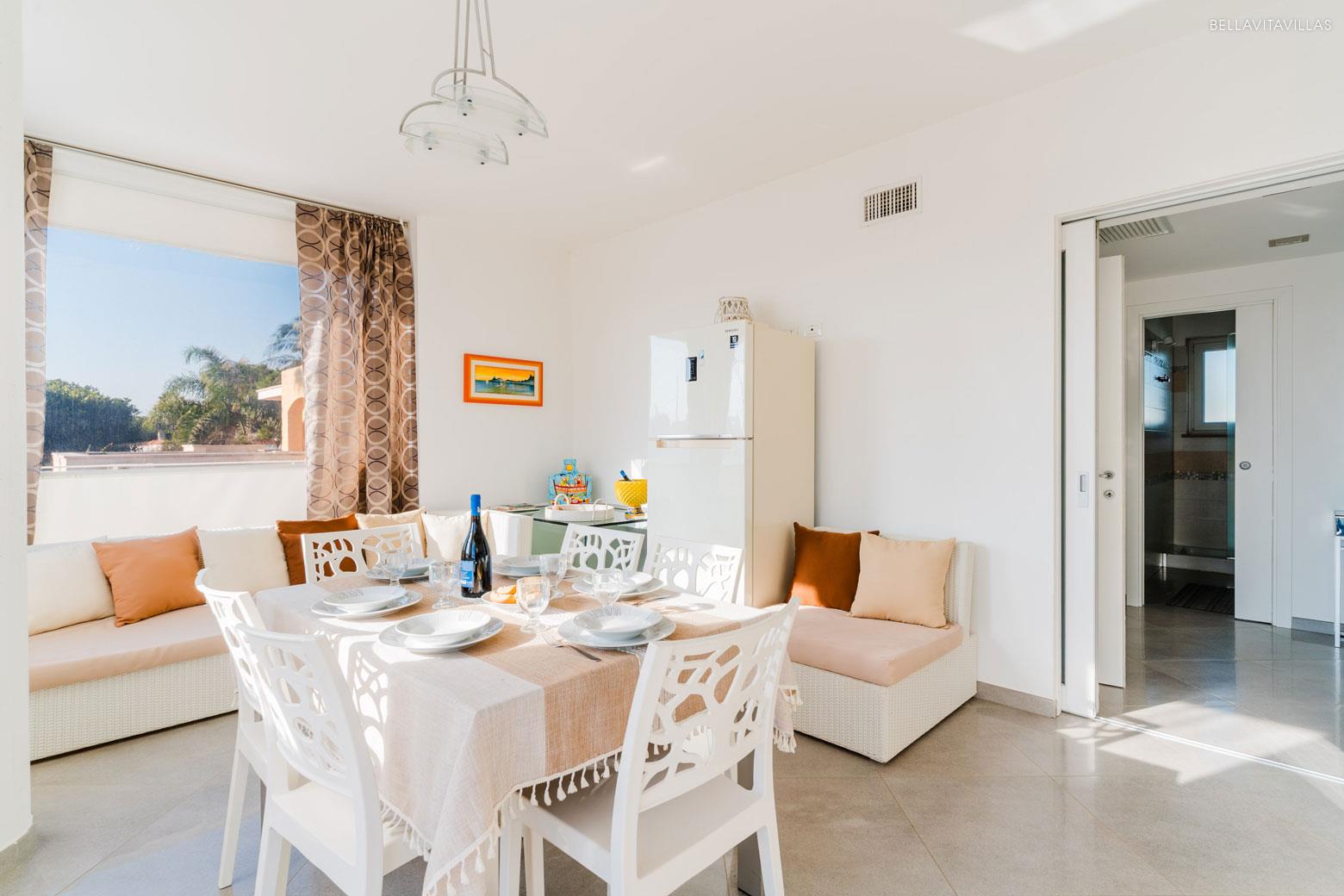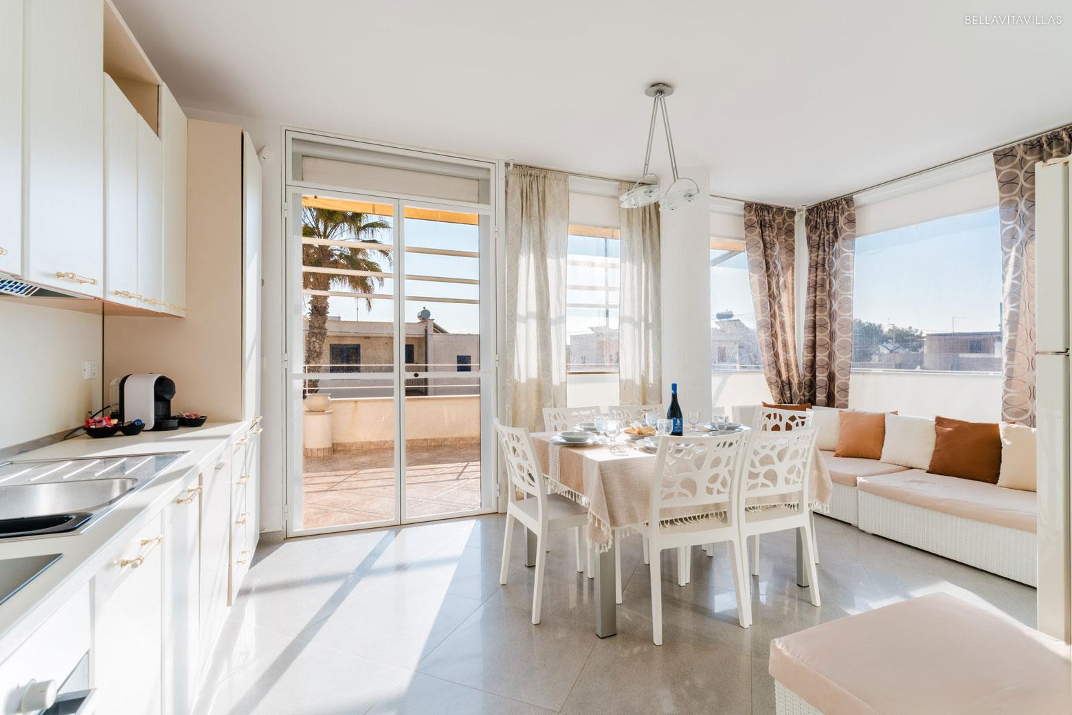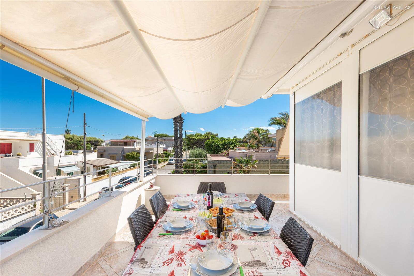 Attico Mezzaluna is a vacation apartment with Jacuzzi on a sea-view terrace in Torre Santa Sabina, marina of Carovigno. The vacation home less than 100 meters from the small beaches, offers up to 7 beds and is located on the second floor, with double terrace overlooking the sea.