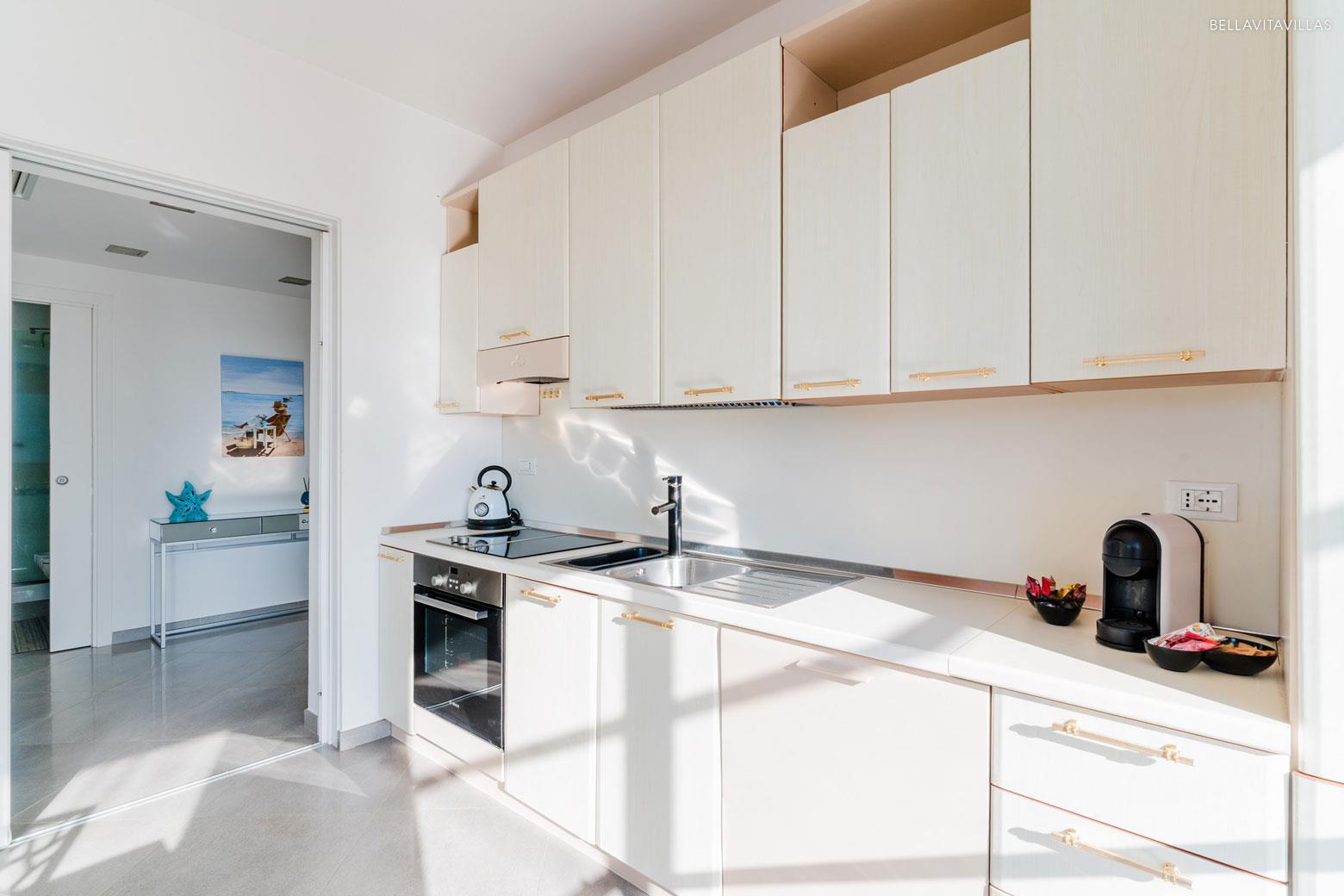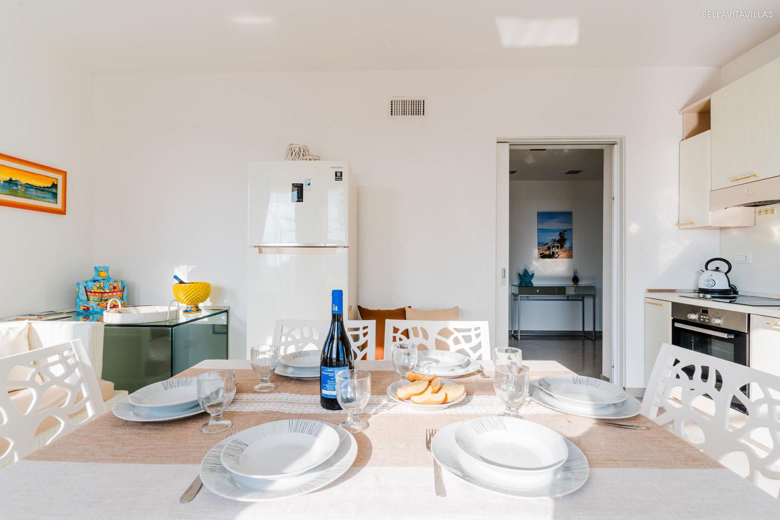 The apartment is equipped with all modern amenities such as air conditioning, washing machine, wi-fi internet, TV, decoder, hair dryer, iron and ironing board, two outdoor showers, parking, kitchen with electric oven, dishwasher, microwave, coffee maker, electric kettle.
