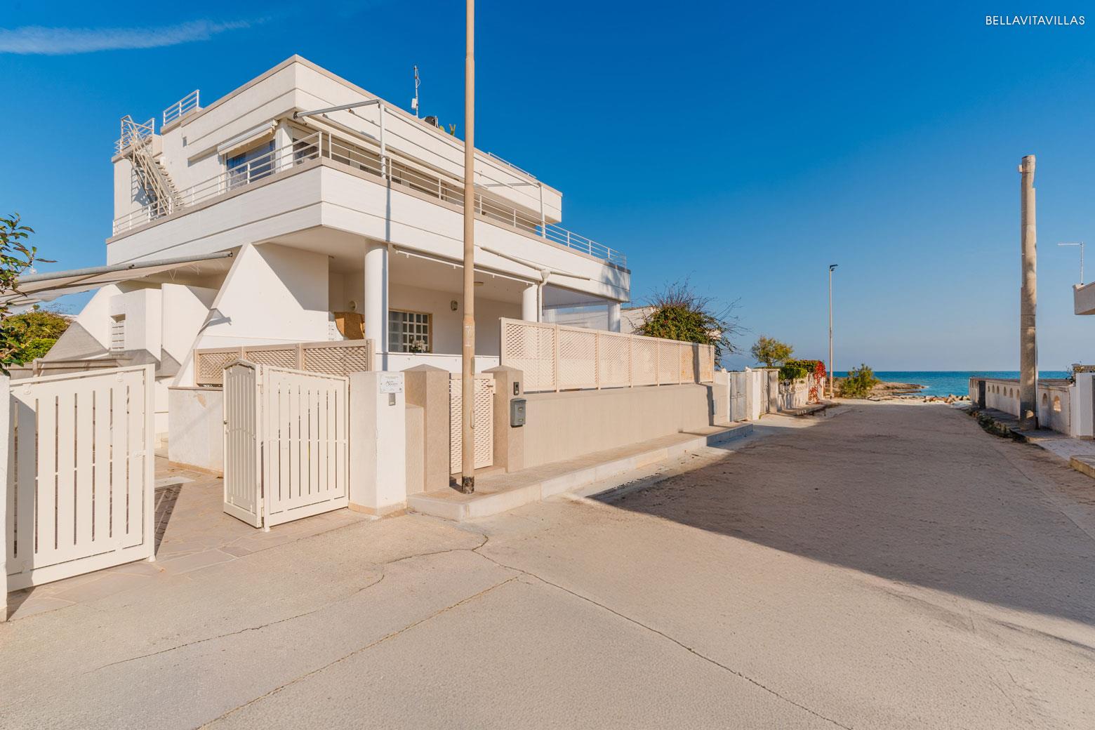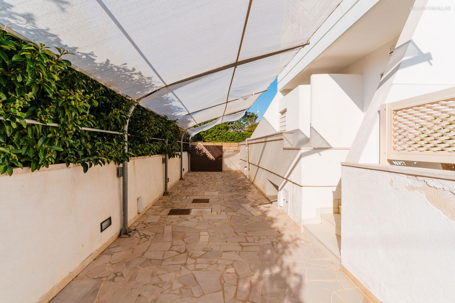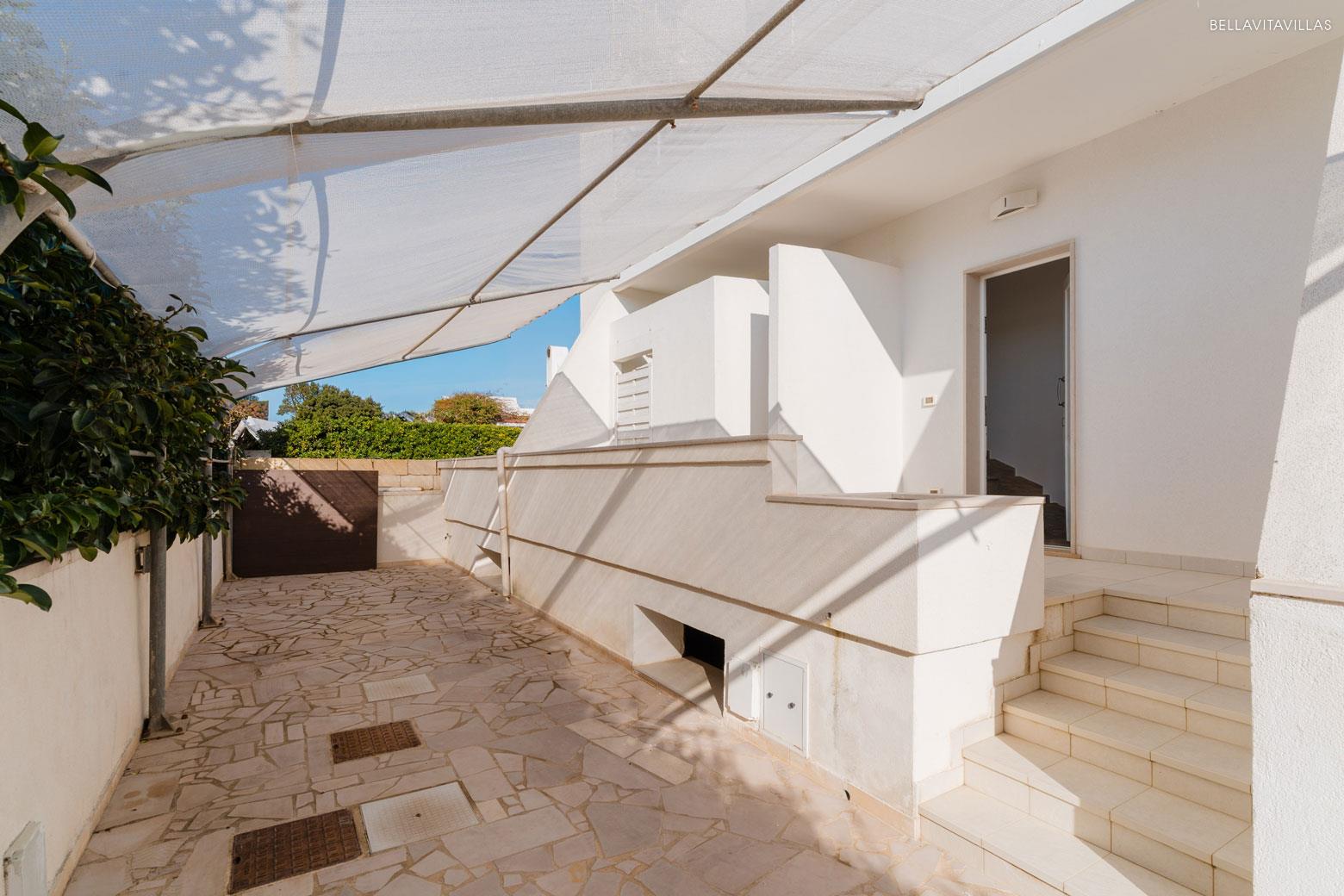 It isaccessed from a courtyard that serves as a shaded parking space and is served by an outdoor shower and laundry area .From the courtyard a staircase to the dwelling, which, thanks to its elevated position, is bright and airy, with breathtaking views of the entire coastline.