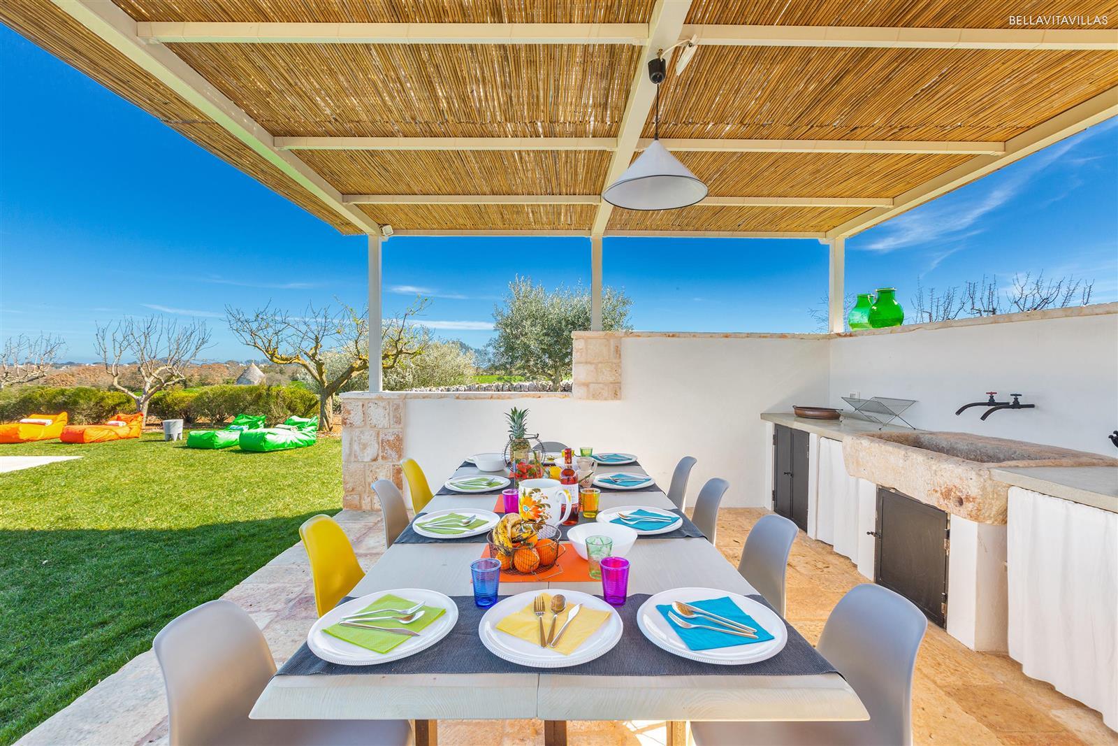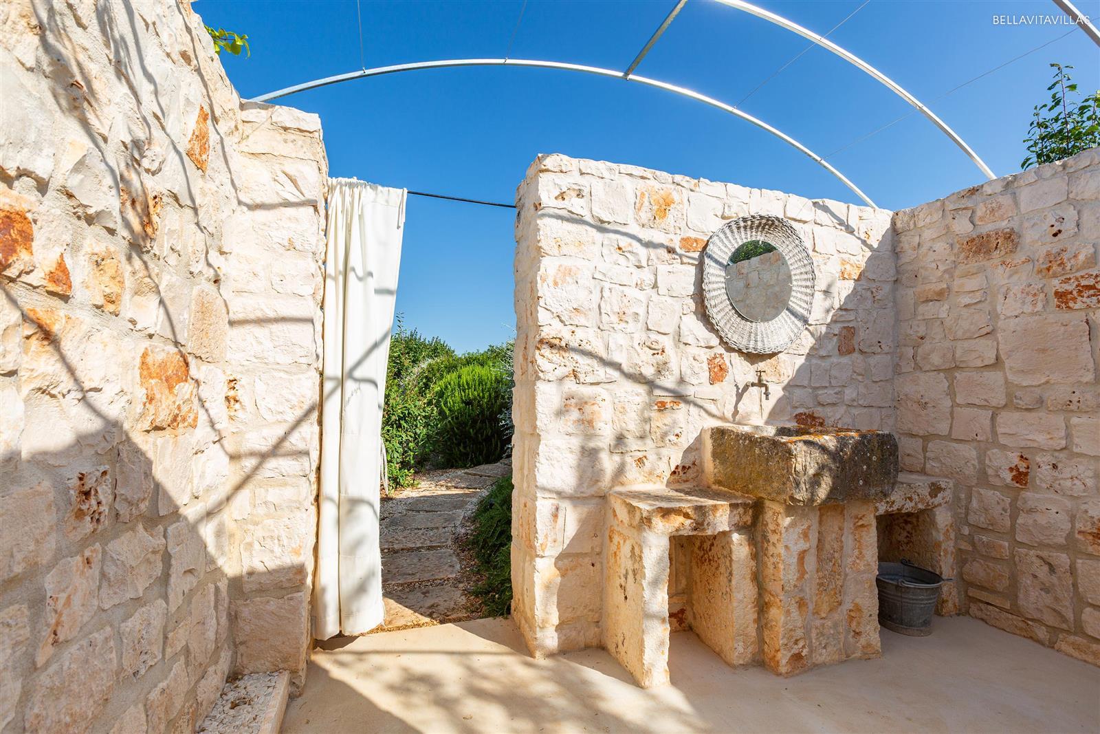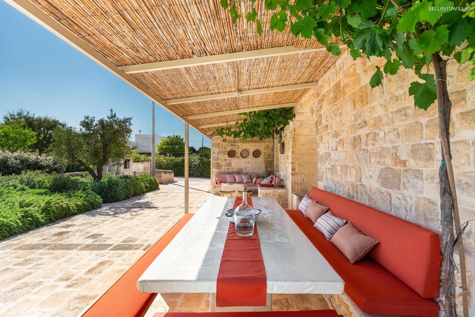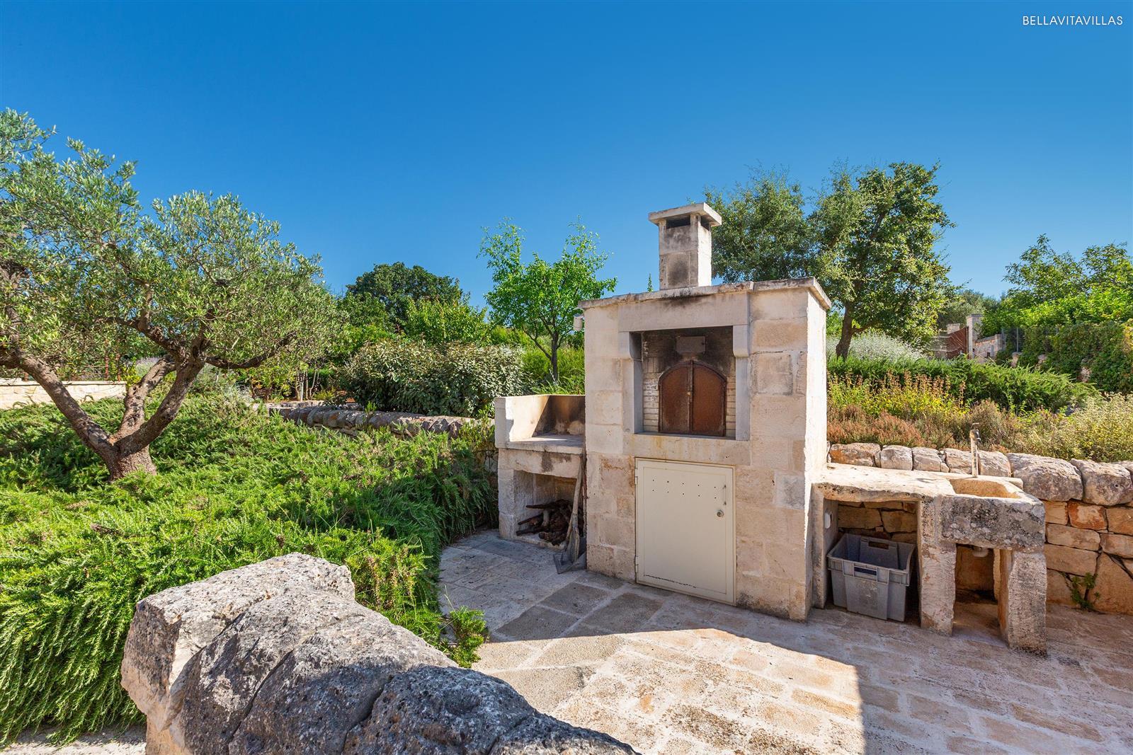 Also on the part in front of the trulli is a veranda, to take advantage of more shelter from the sun or wind and the brick barbecue area and wood-burning oven.