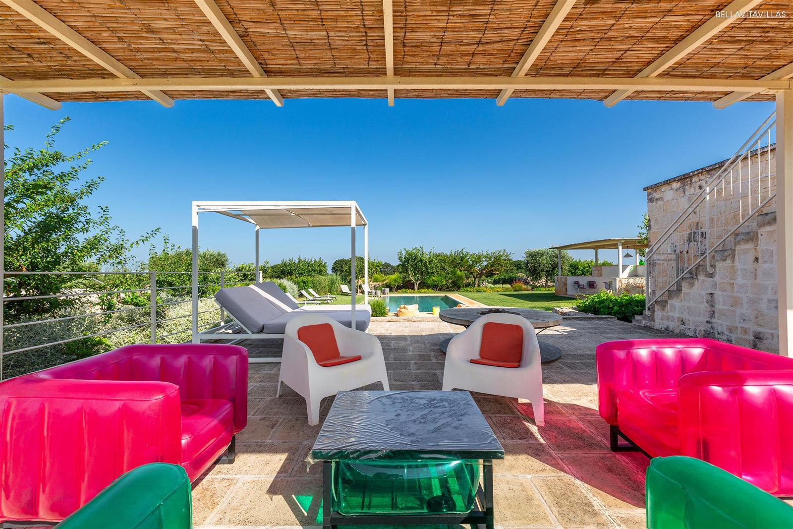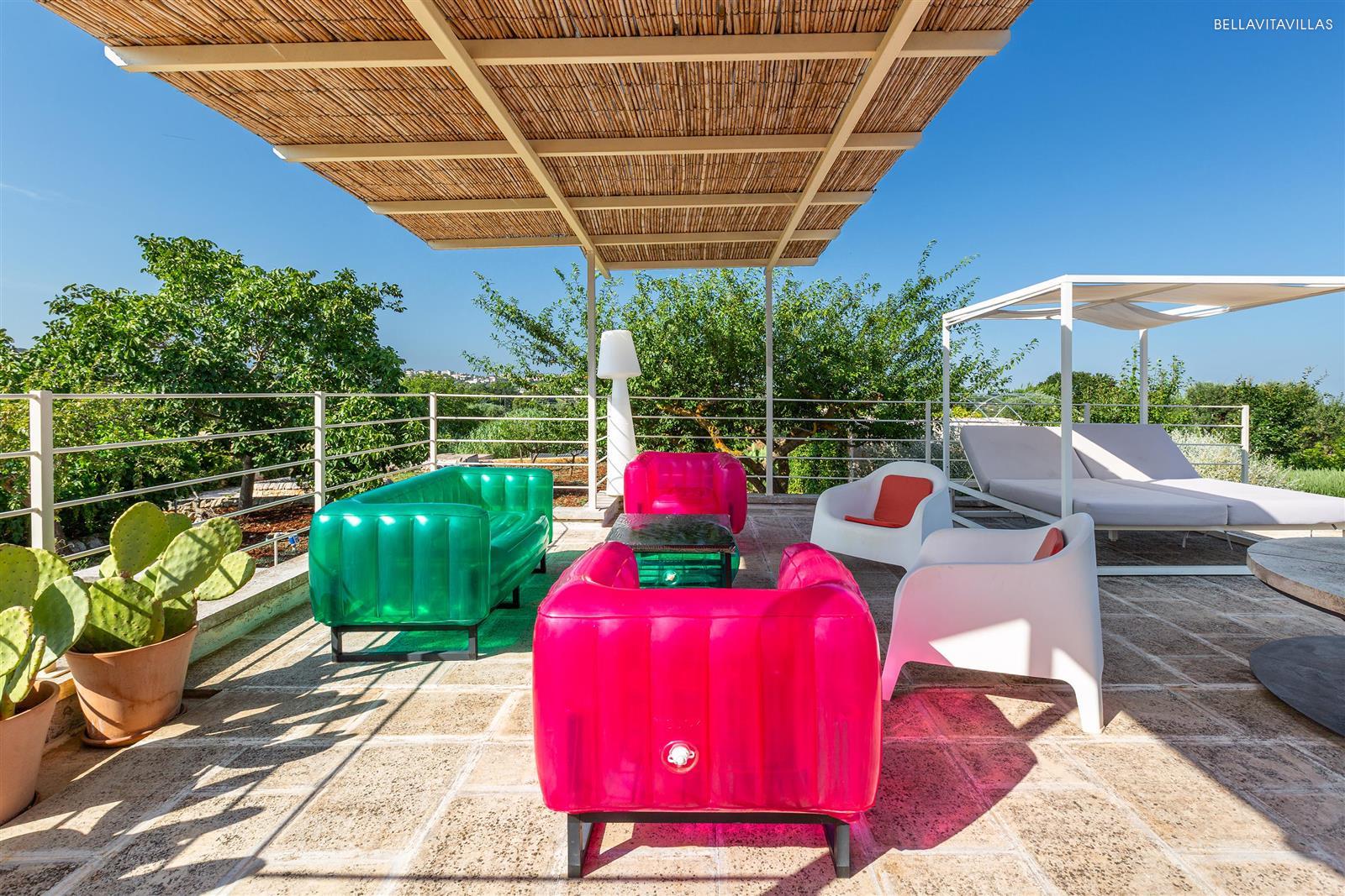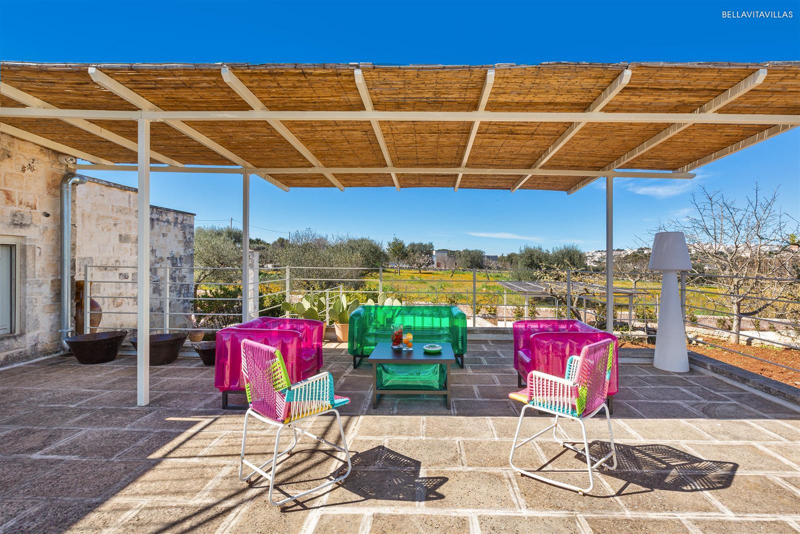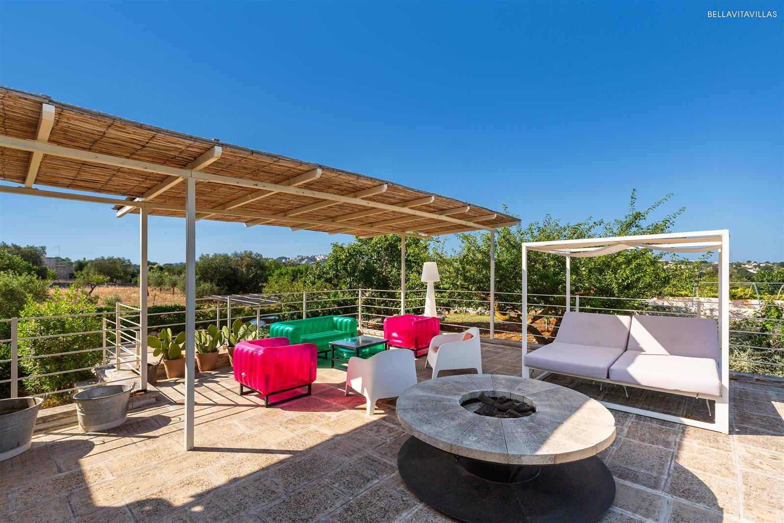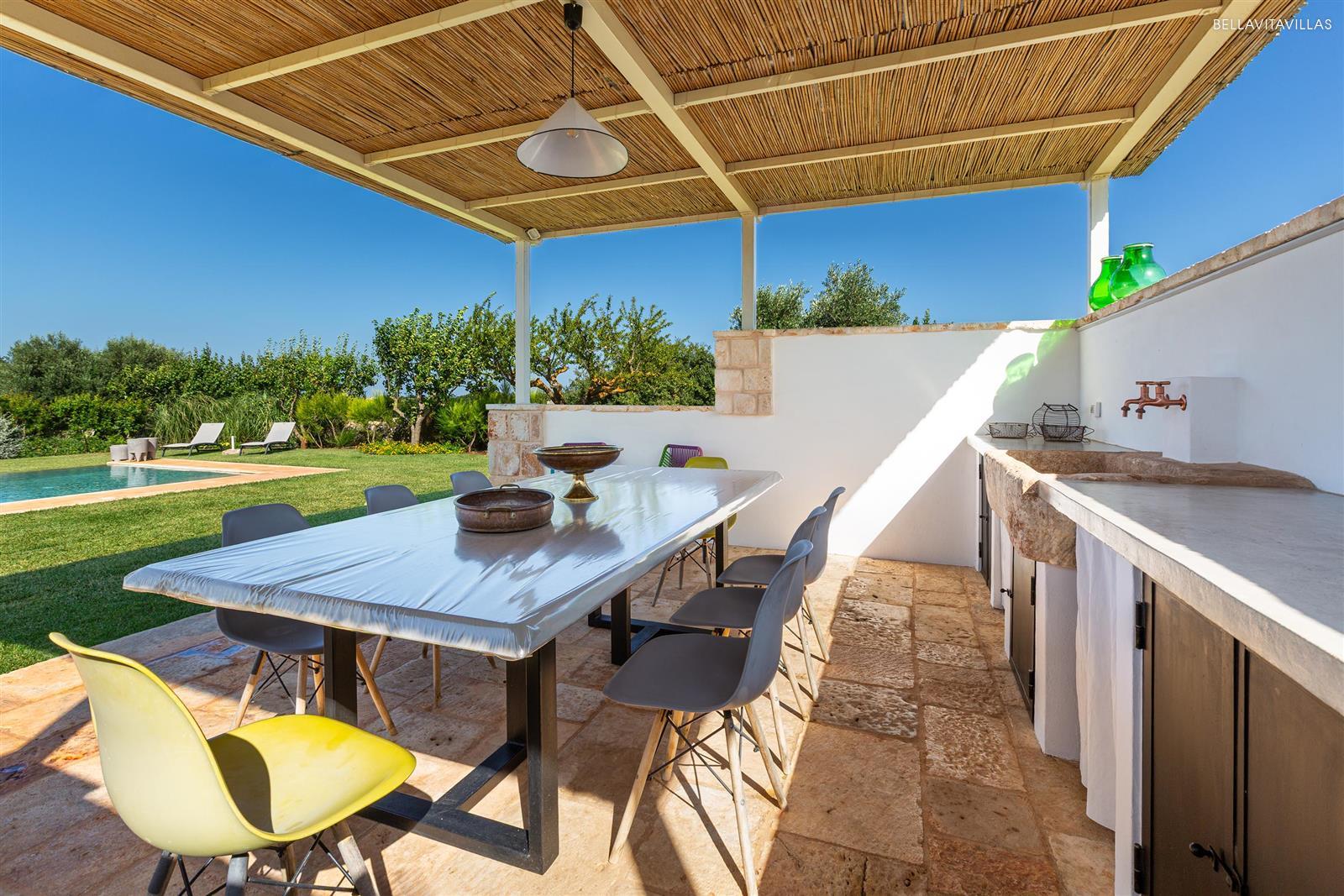 Also on the part in front of the trulli is a veranda, to take advantage of more shelter from the sun or wind and the brick barbecue area and wood-burning oven.