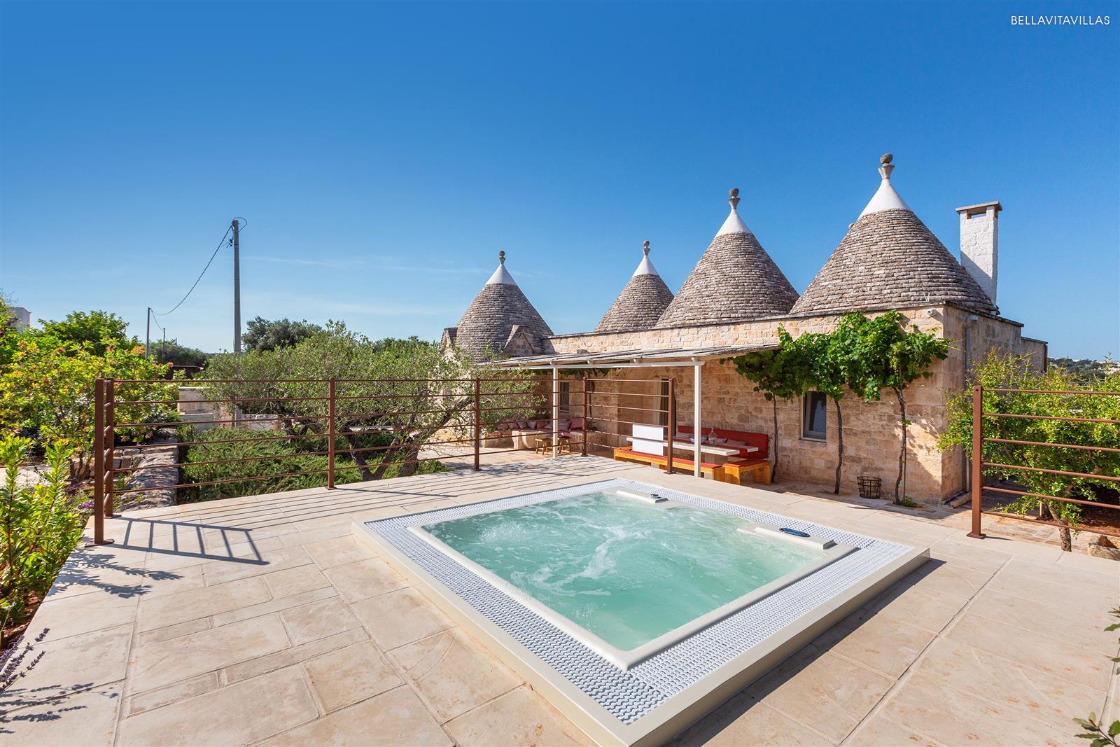 Almaviva Trulli are beautiful trulli with swimming pool, hot tub and lawn. The typical rural dwelling, completely renovated, is for vacation rental in Valle d`Itria in Cisternino.