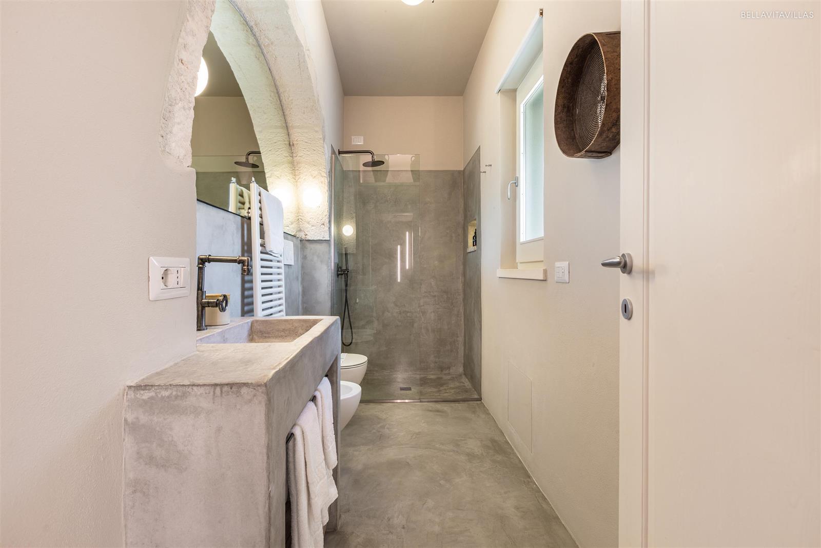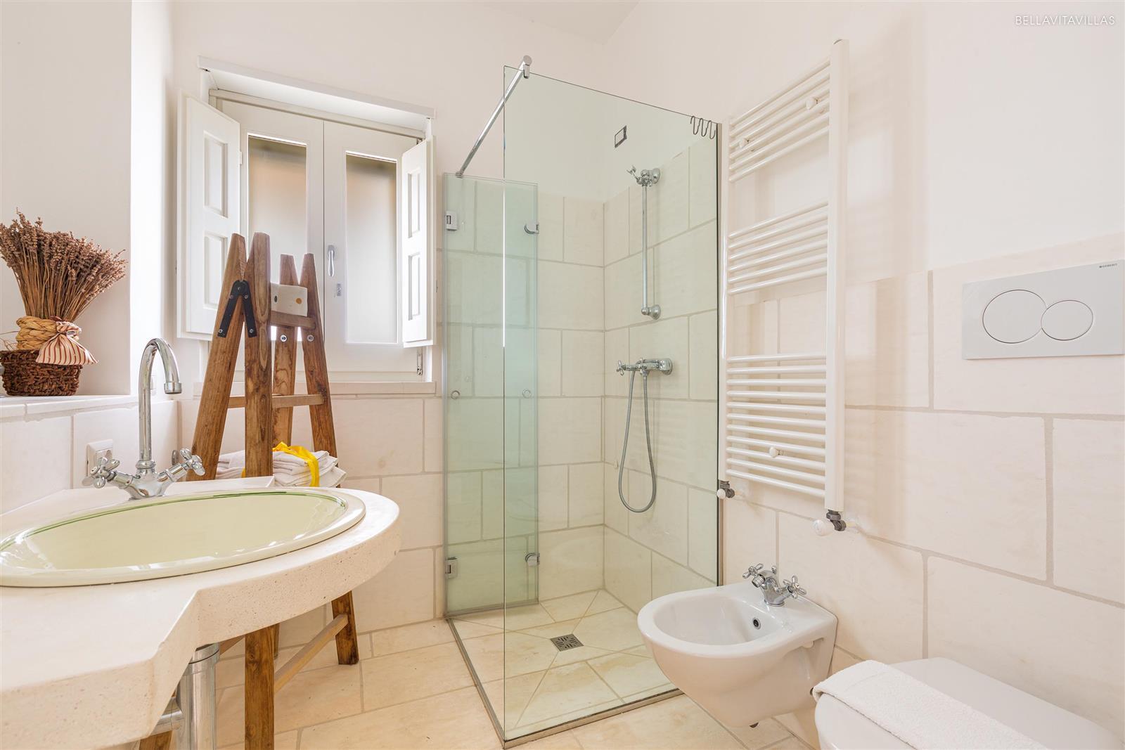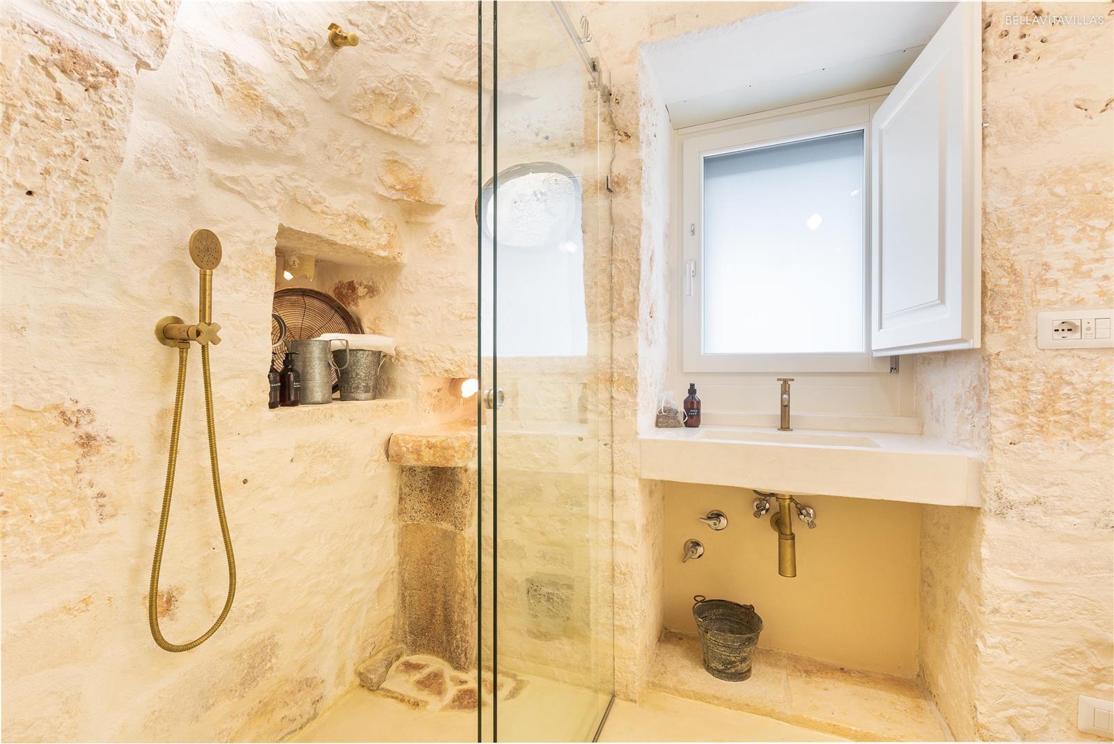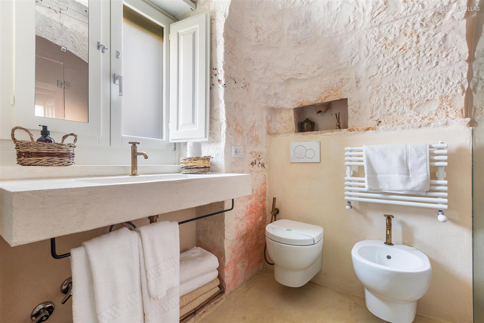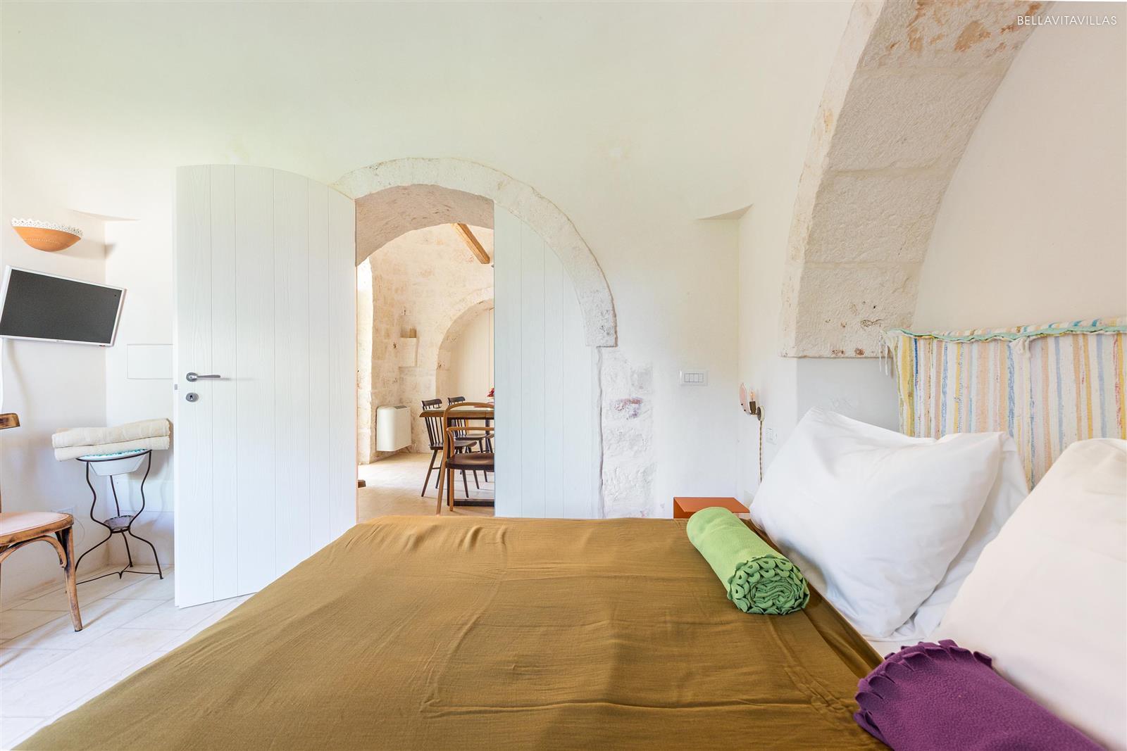 Labitazione has an entrance to a comfortable trullo dining room. Next to it is the modern, well-equipped kitchen and 4 double bedrooms, three of which have en suite shower rooms and one with an adjoining bathroom of its own.