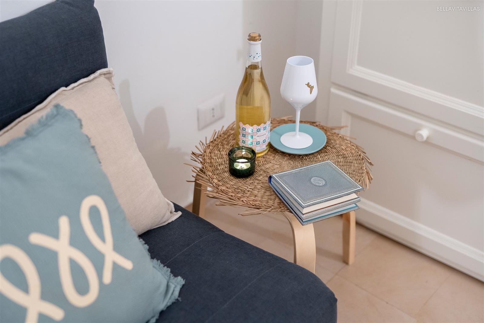 The sleeping area is 1 double bedroom with smart TV, air conditioning and direct access to the patio and pool. The real luxury of this solution is precisely this oasis of quiet all dedicated to relaxation and well-being. Upon request, the pool can be heated (extra charge).