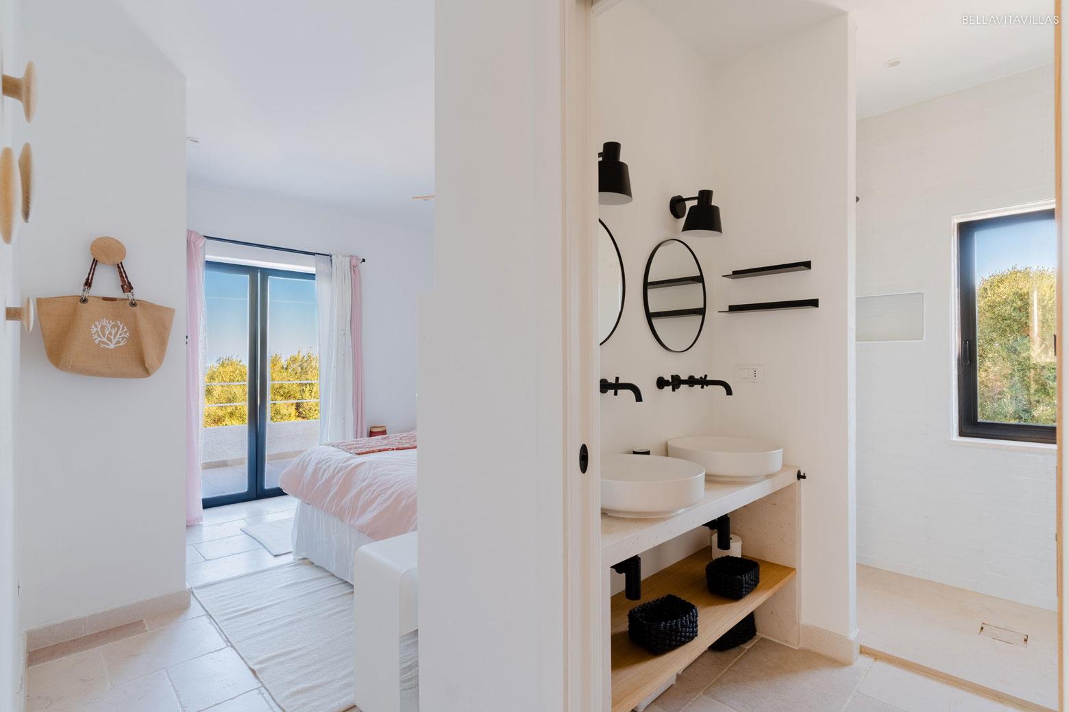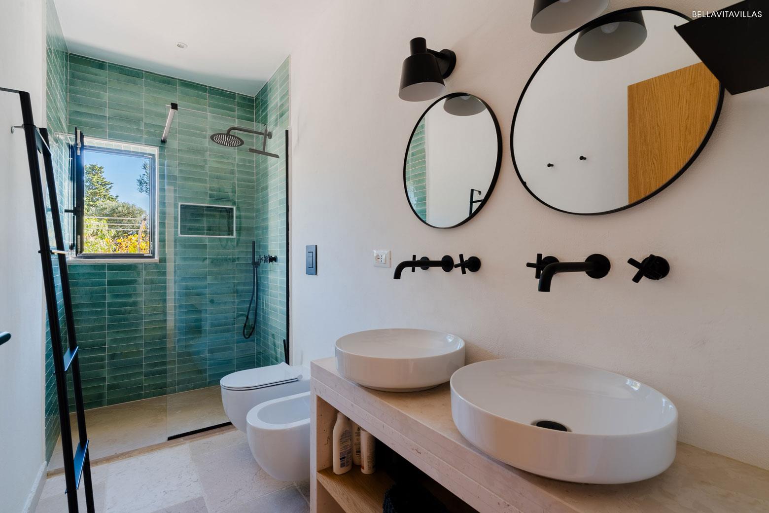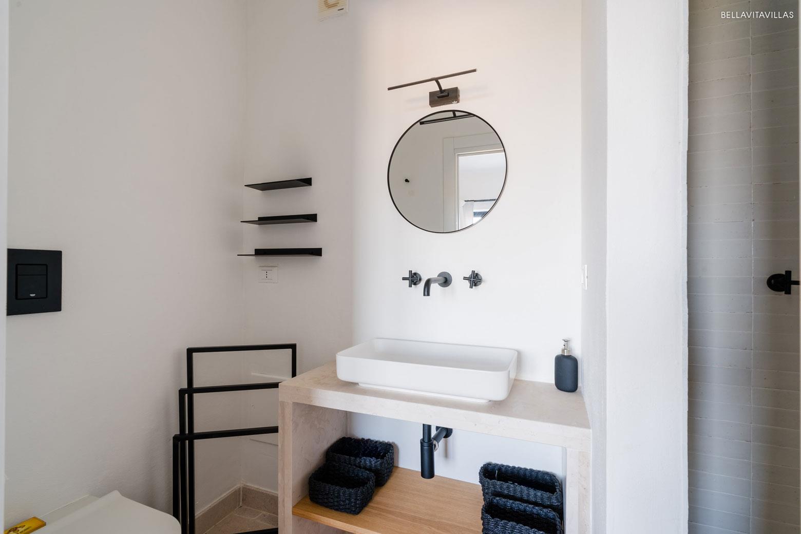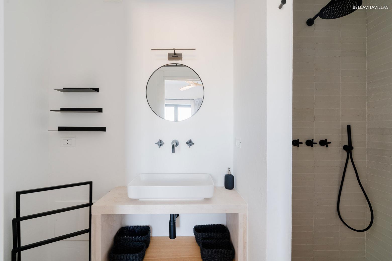 Upstairs there are 3 double bedrooms, elegant, cozy, each with en suite shower room and direct access to the large panoramic terrace from which you can enjoy magnificent sea views: perfect for outdoor breakfasts and unforgettable sunsets.