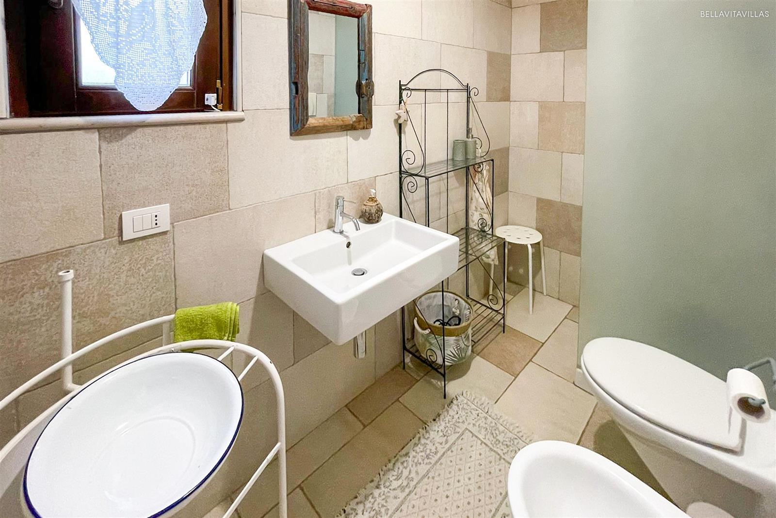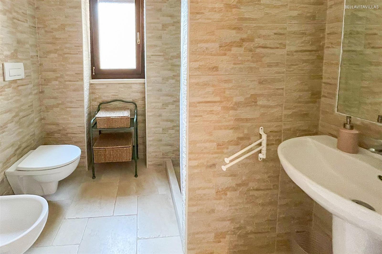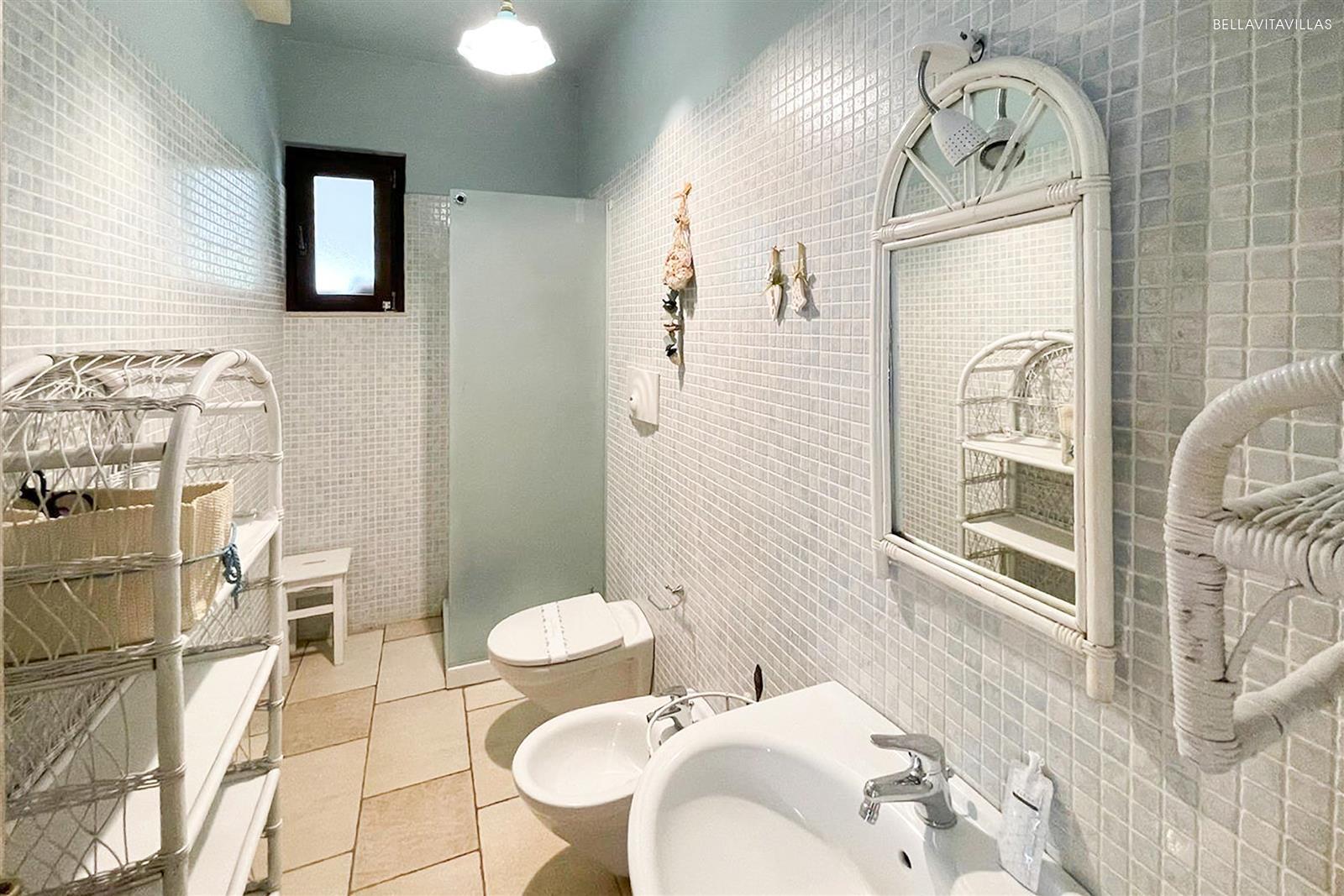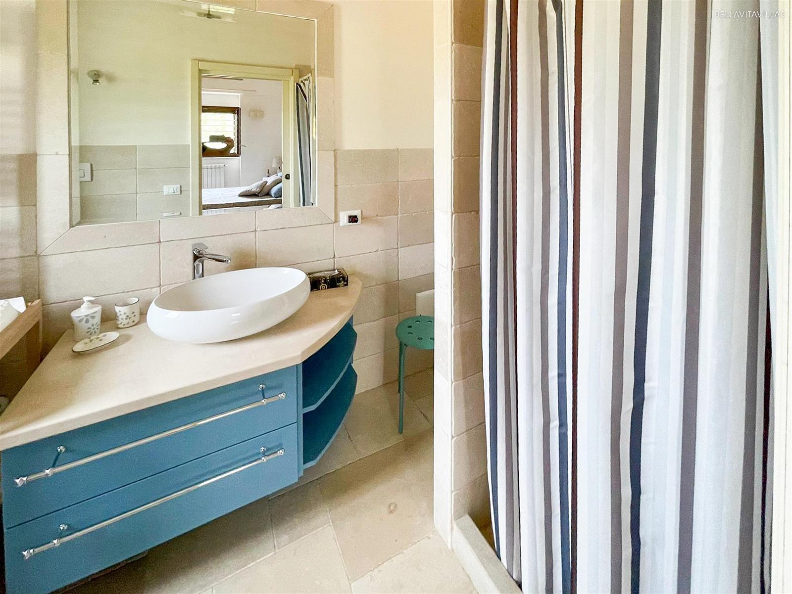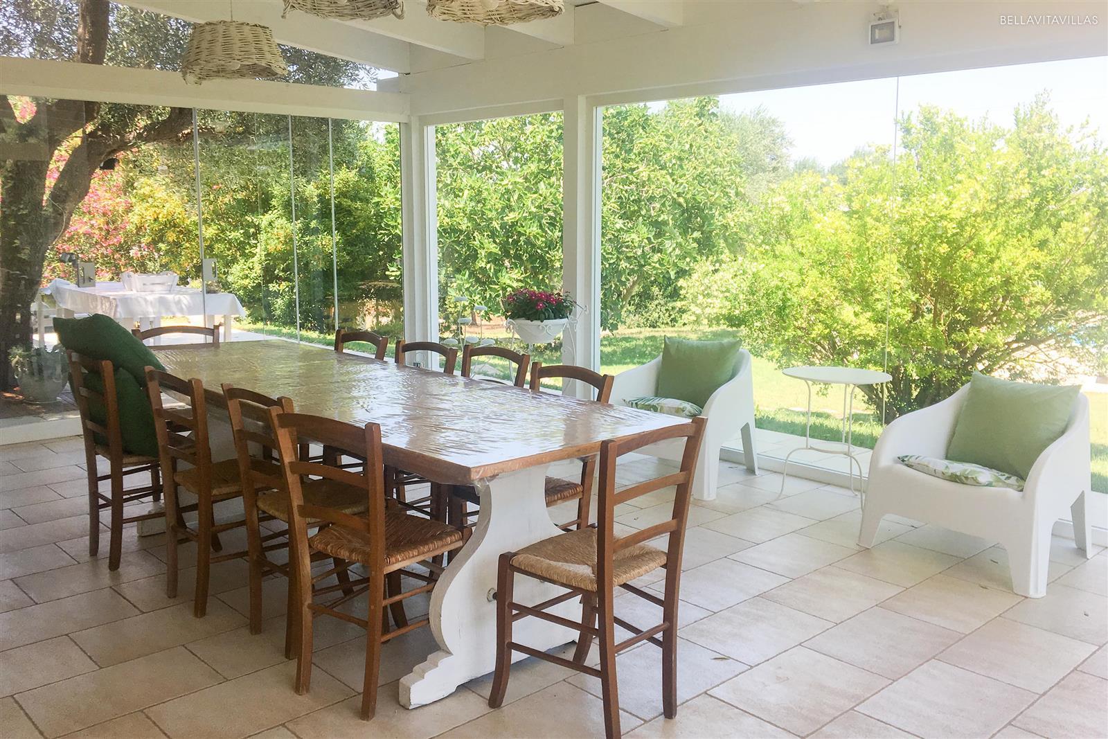 The large garden offers several relaxing corners such as the lawn dotted with ancient olive trees, the solarium around the pool, the gazebo, the barbecue area and equipment available for dinners and joyful evenings.