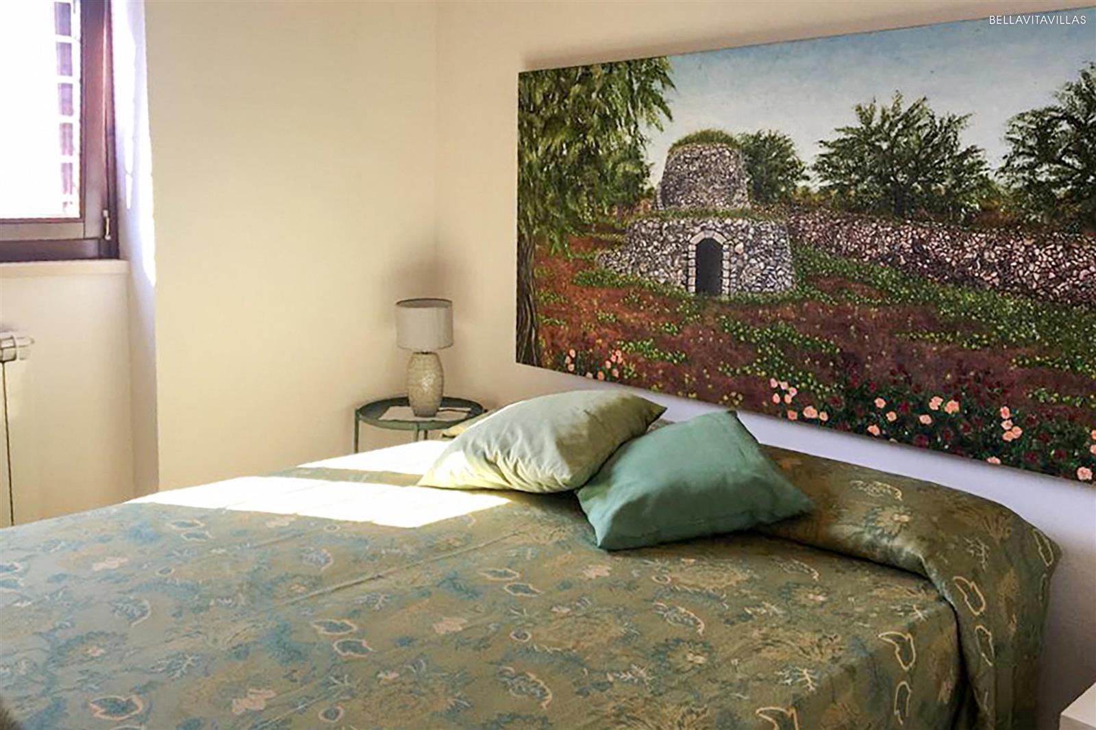 The second trullo, Telemaco, has 4 double bedrooms, 3 bathrooms and living room located in the majestic royal trullo. All windows overlook the countryside full of trees, paths and walkways bordered by hedges and bushes.