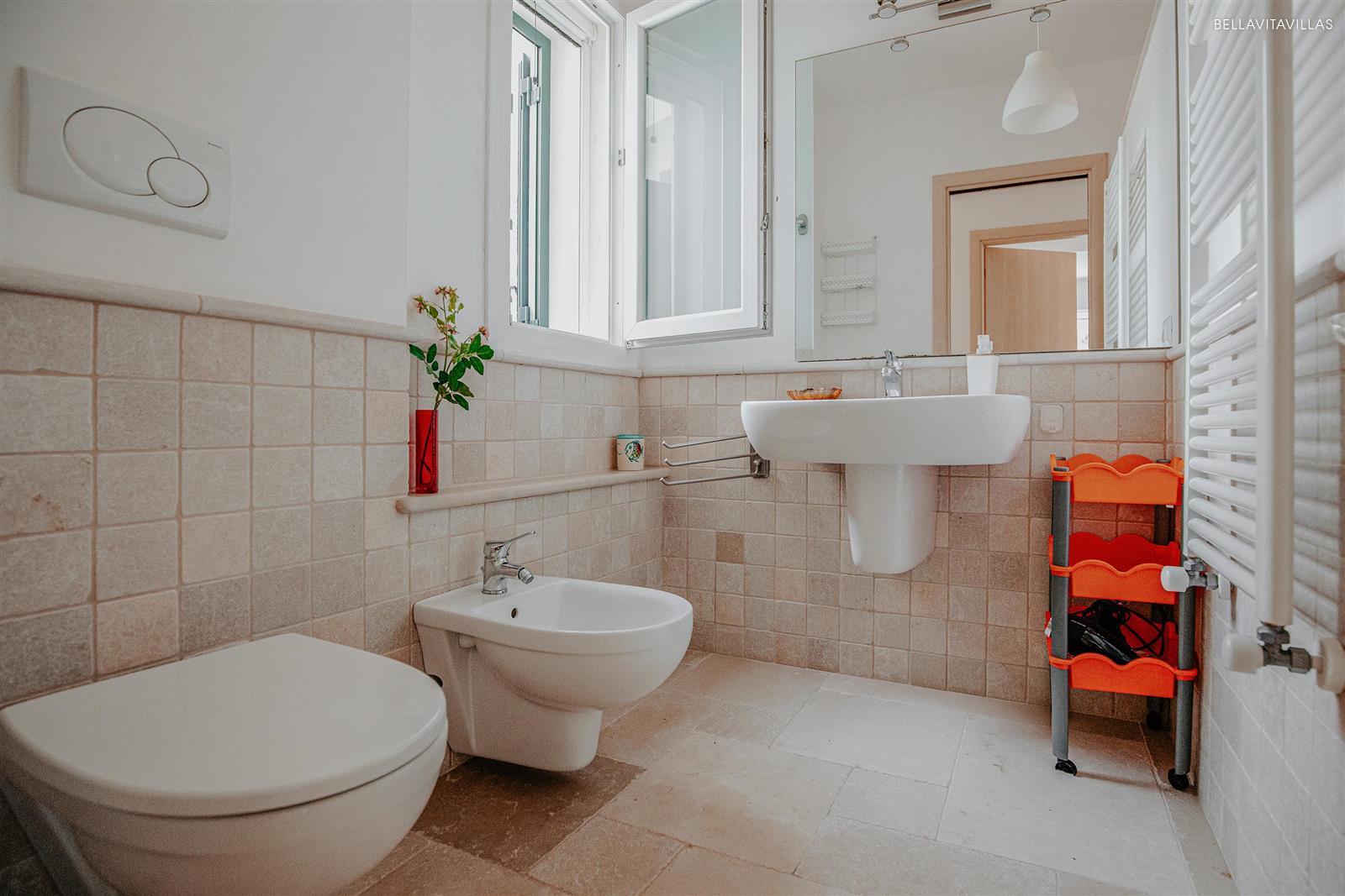 In addition to the pool with solarium, the large outdoor spaces are equipped with outdoor dining area and barbecue, outdoor shower and shaded parking, automatic gate and alarm system with video surveillance.