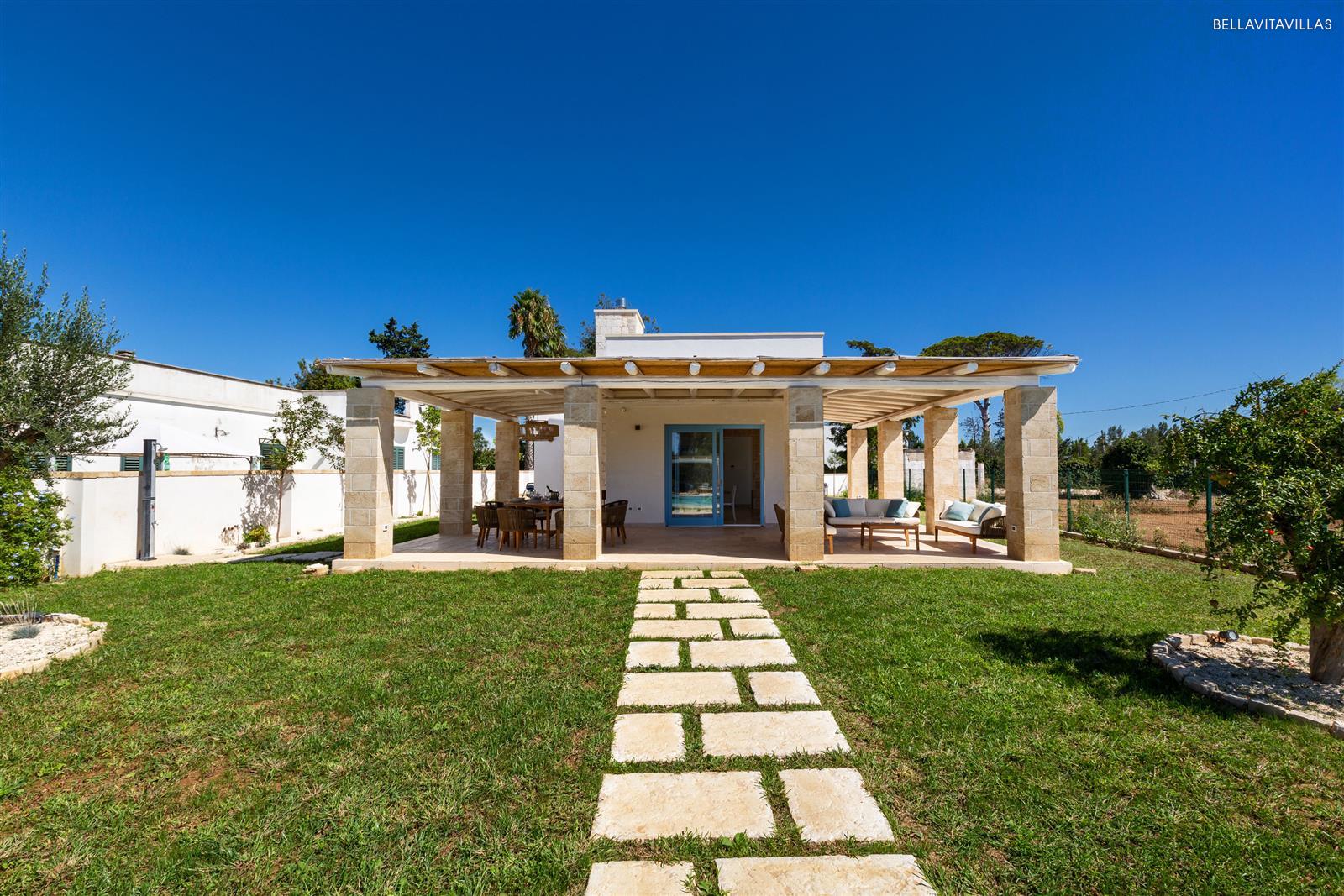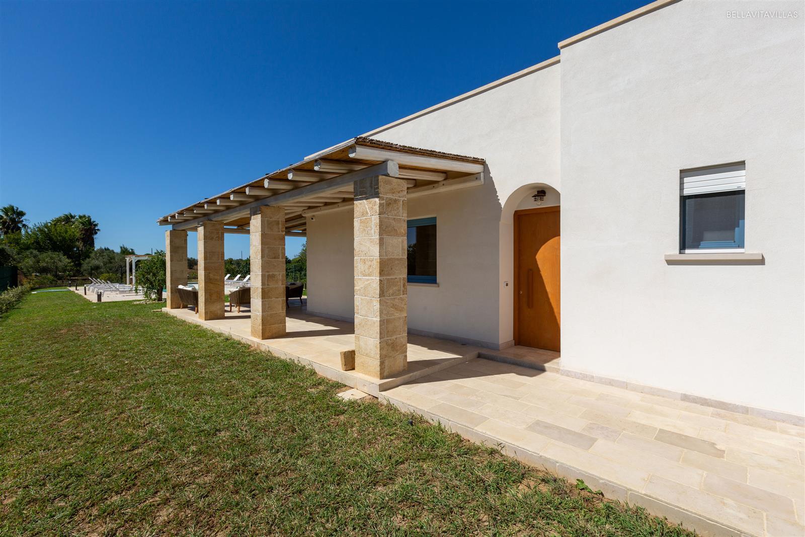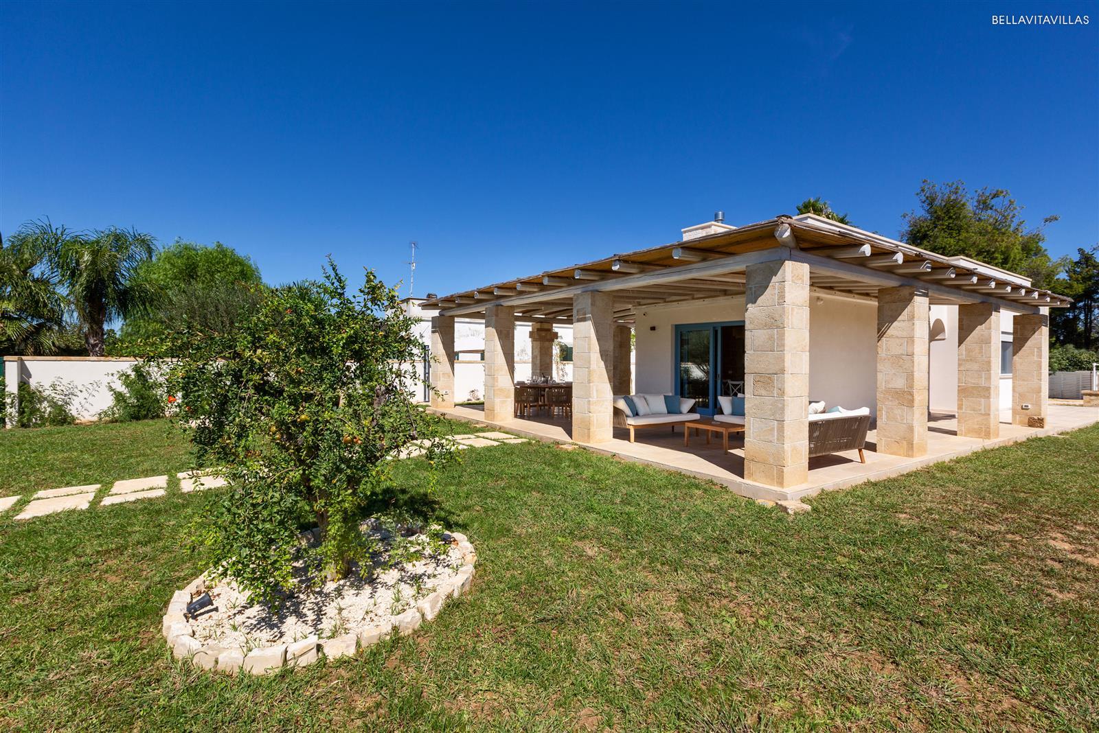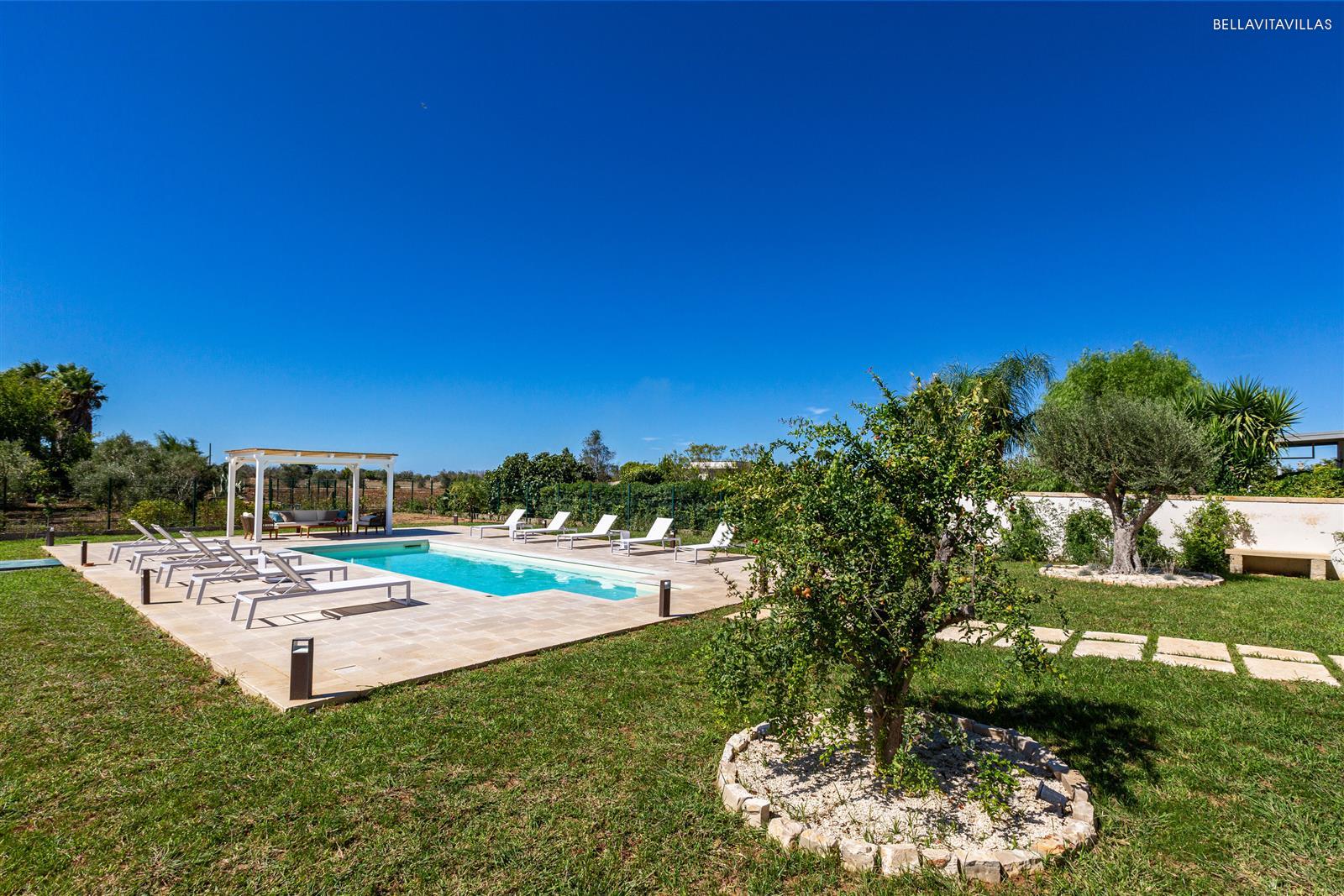 Villa Le Pozze is a prestigious and brand new villa with swimming pool, large garden with lawn and equipped outdoor spaces to spend absolutely relaxing vacations in Salento, in the area of Gallipoli.