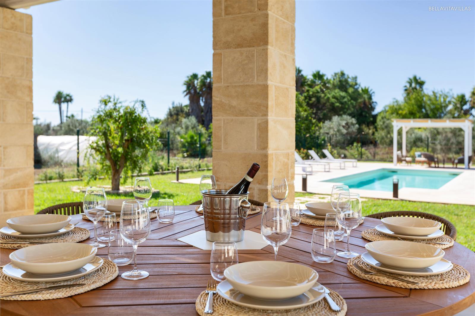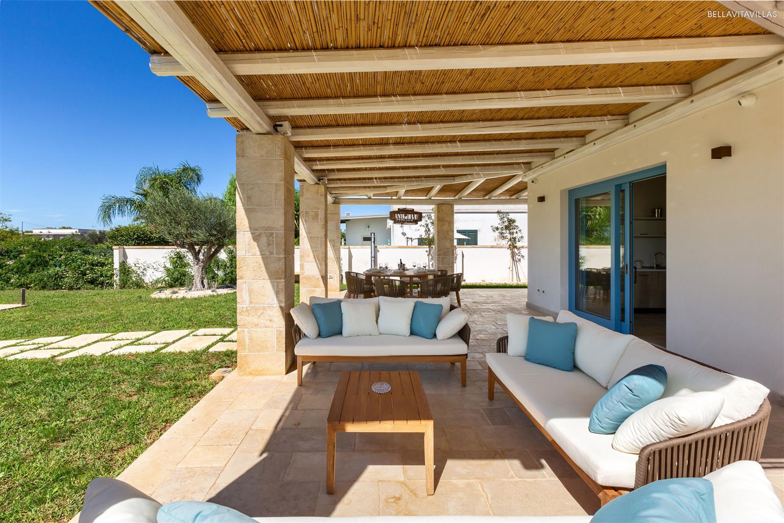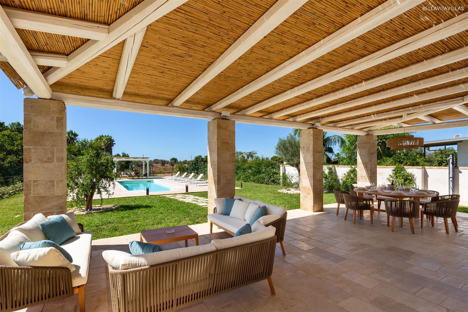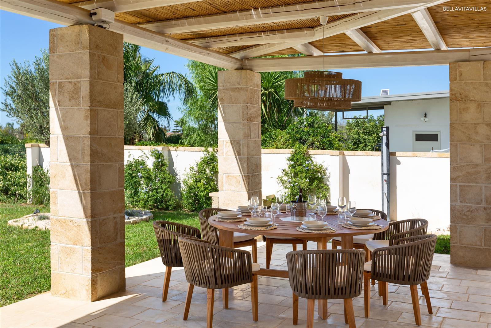 Villa Le Pozze is a prestigious and brand new villa with swimming pool, large garden with lawn and equipped outdoor spaces to spend absolutely relaxing vacations in Salento, in the area of Gallipoli.