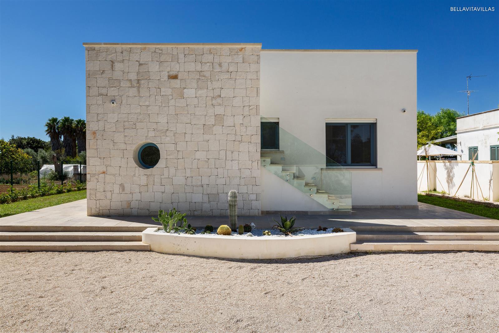 The villa, located in Matino, just a few minutes by car from the beaches of Lido Pizzo, Baia Verde and Gallipoli, offers up to 8 beds.