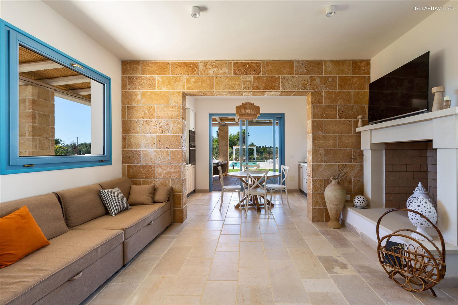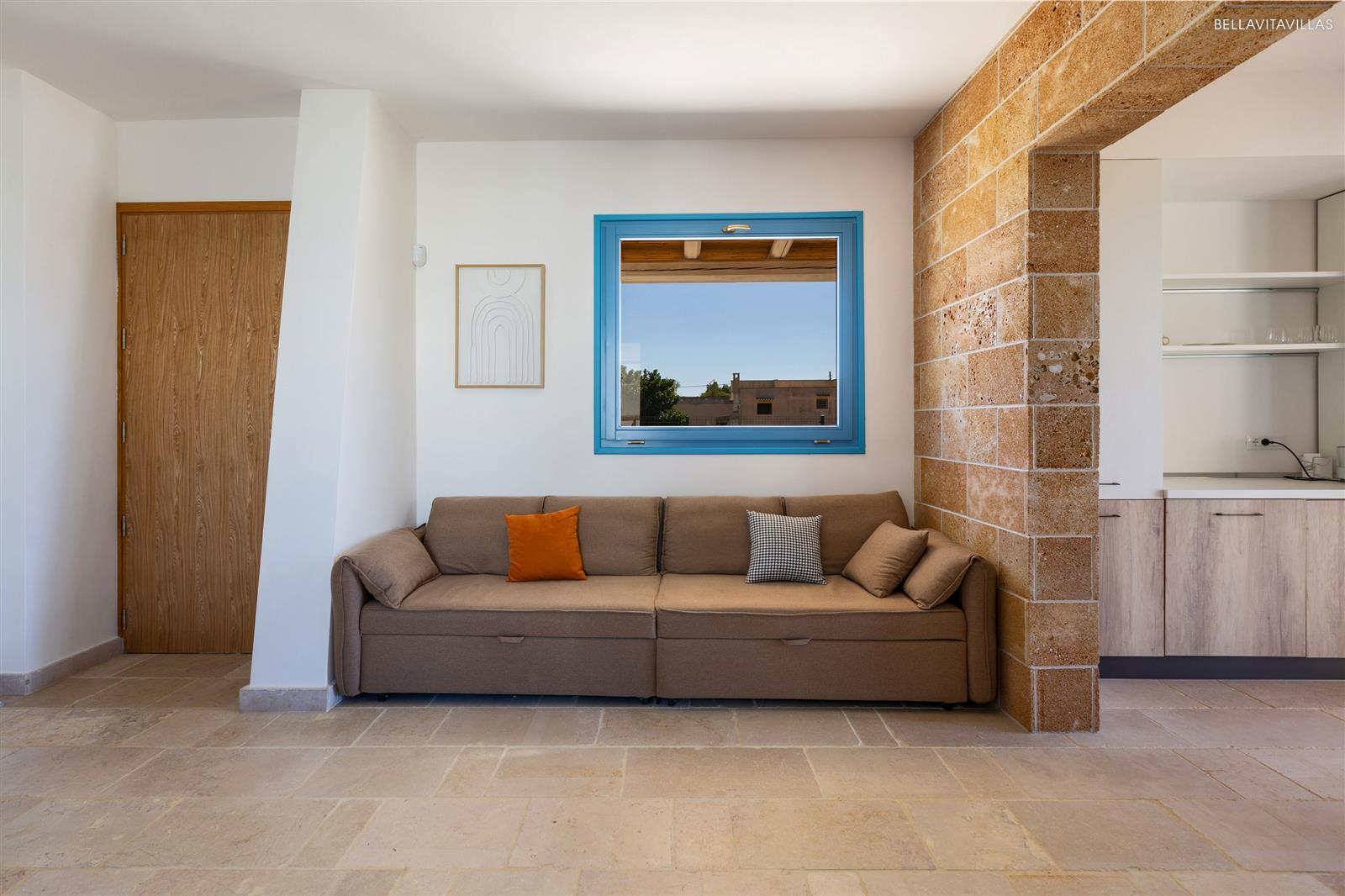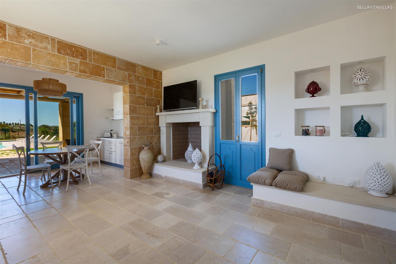 Villa Le Pozze consists of bright and modern, well-finished rooms. A cozy open space includes the open kitchen, dining room and living room with 1 king size double sofa bed (1.36x2.55m) , fireplace and TV.