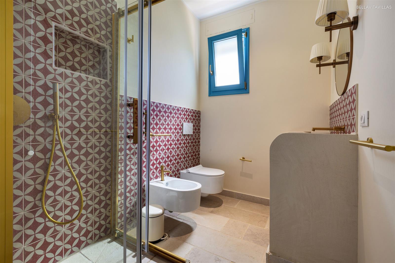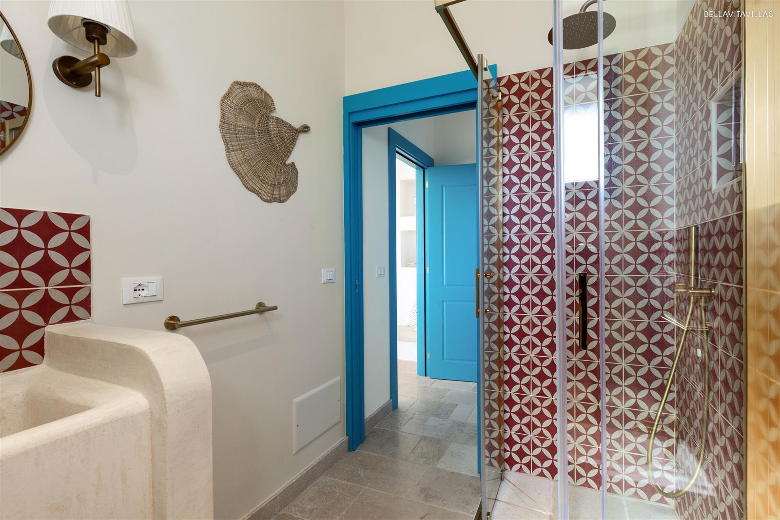 The sleeping area consists of 3 spacious and refined double bedrooms. The villa is completed by 2 full shower rooms.