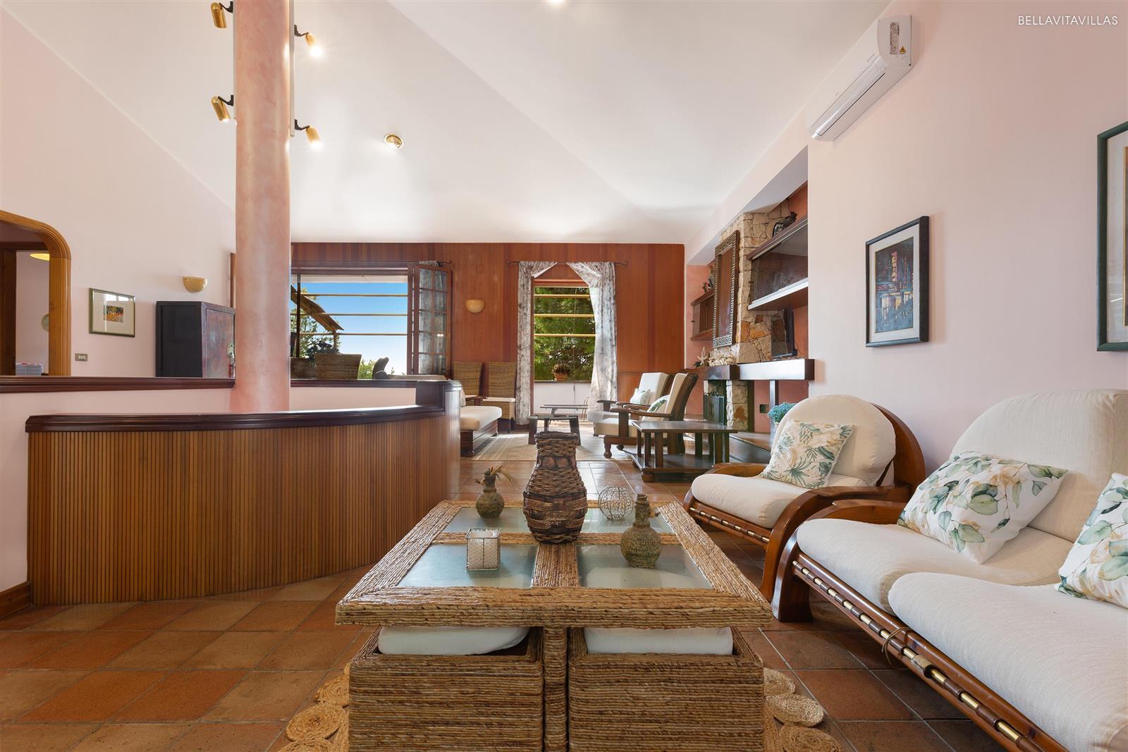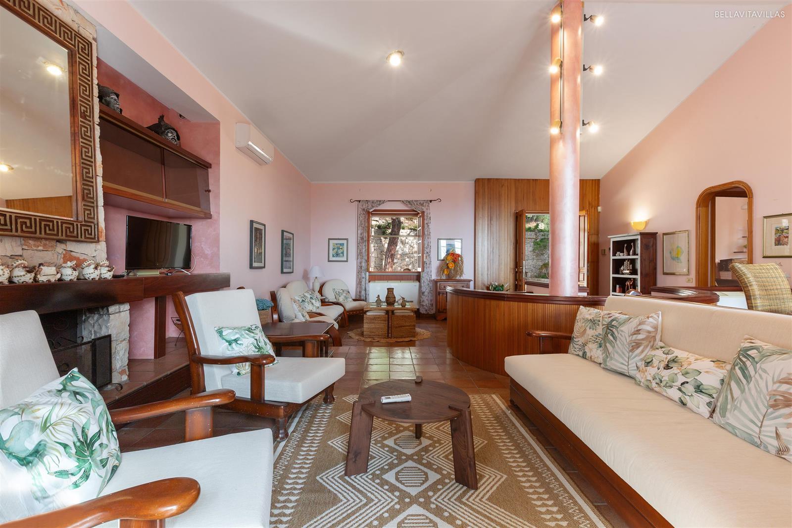 The living area consists of living room with lounges, large windows overlooking the green pines and the blue sea, and fireplace. Here there is 1 double sofa bed.