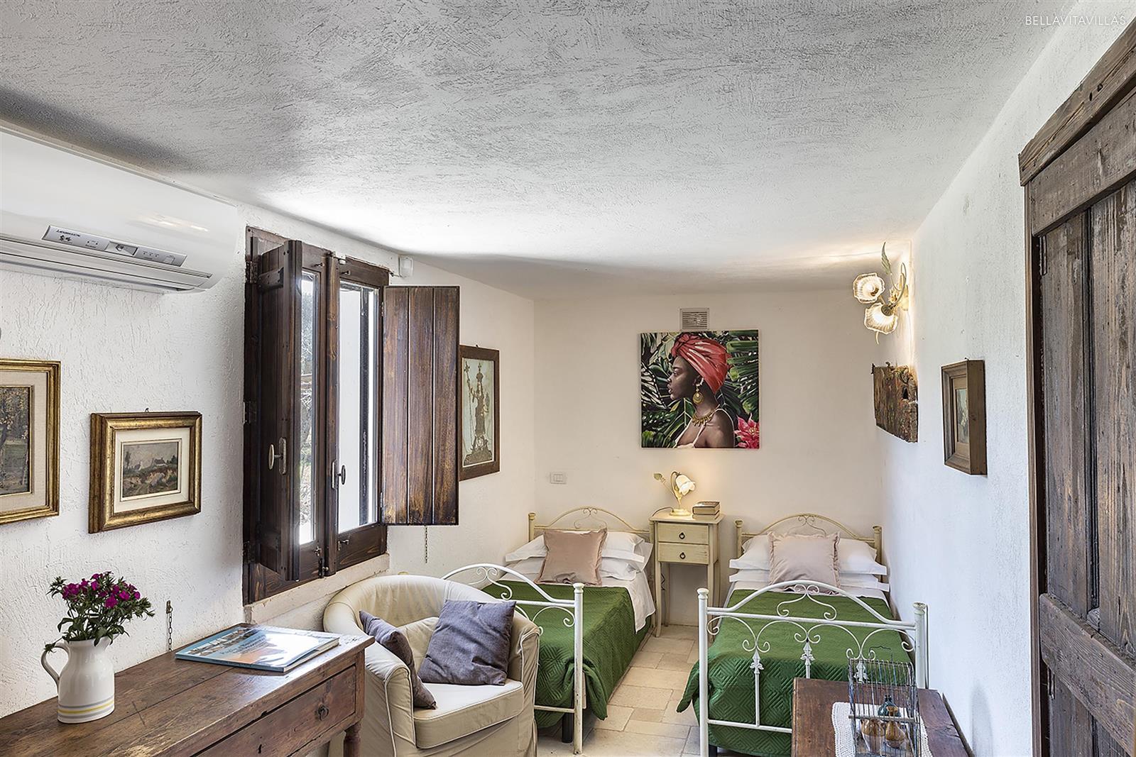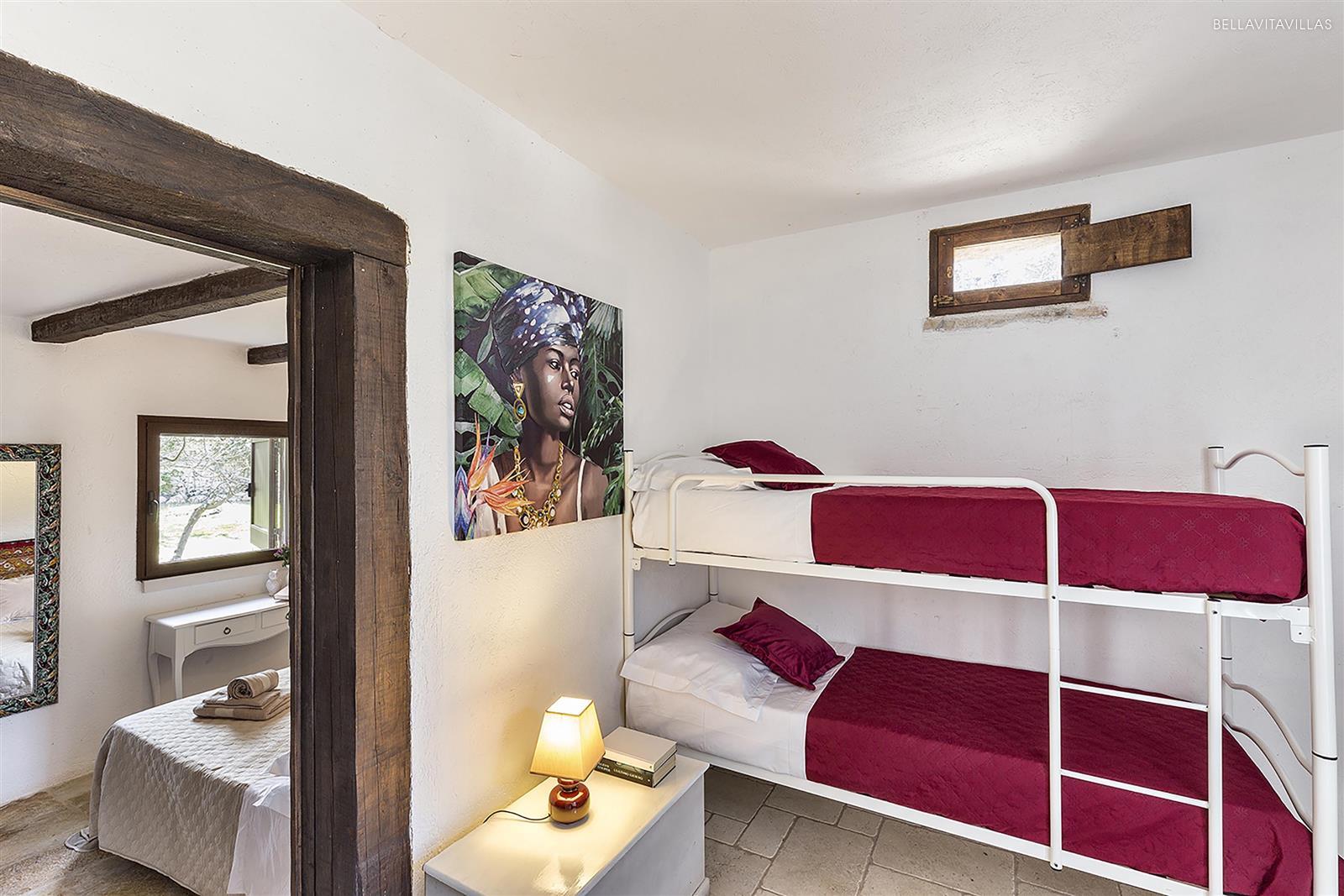 Accanto al complesso di trulli vi è la dependance in cui sono presenti 2 camere da letto, di cui una matrimoniale e una doppia con letti singoli, oltre al bagno doccia.