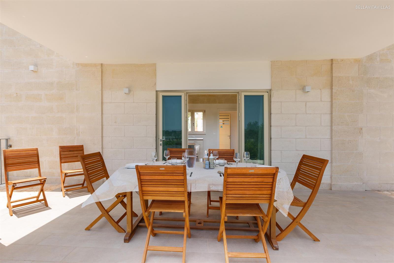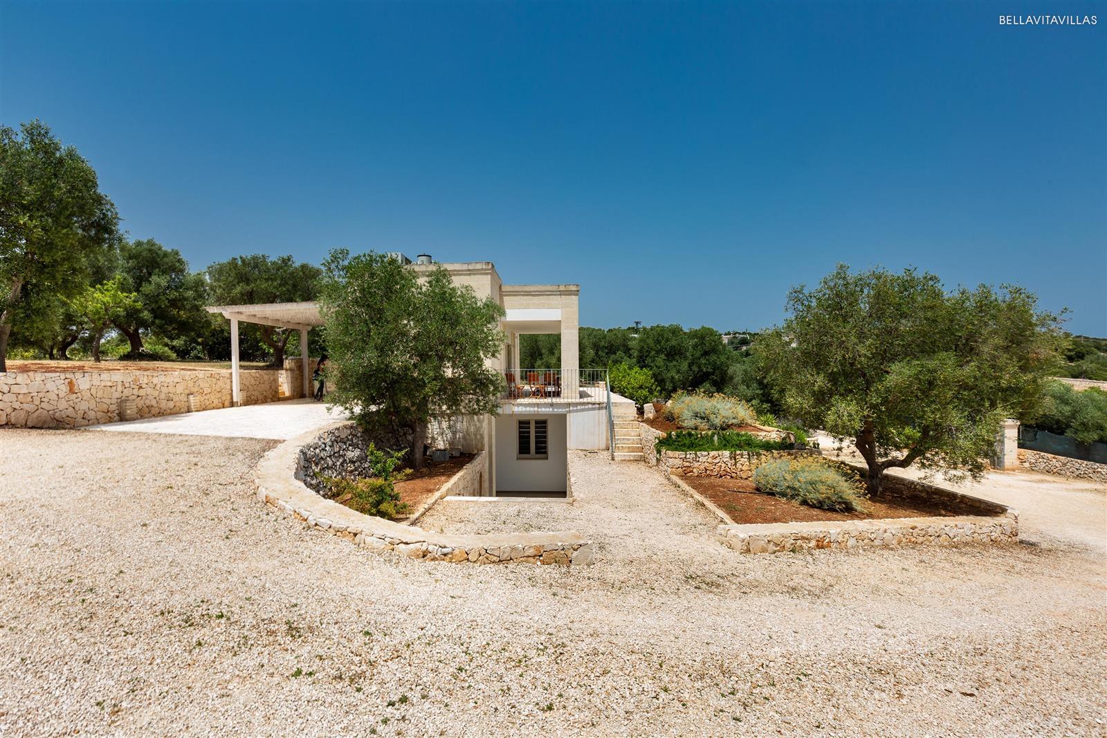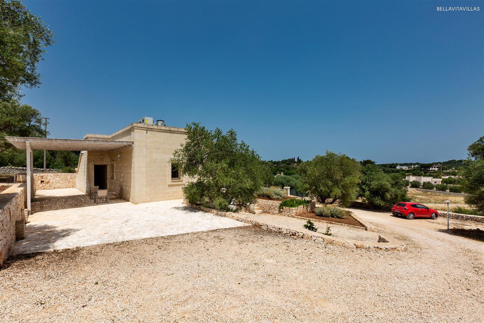 La recinzione della villa è un ricamo di muretti a secco e pietre tipiche, che offrono spazi gradevoli all`ombra anche per trascorrere piacevoli pause di relax. Il giardino ad uso esclusivo è lussureggiante di piante tipiche mediterranee, ulivi e alberi da frutto.