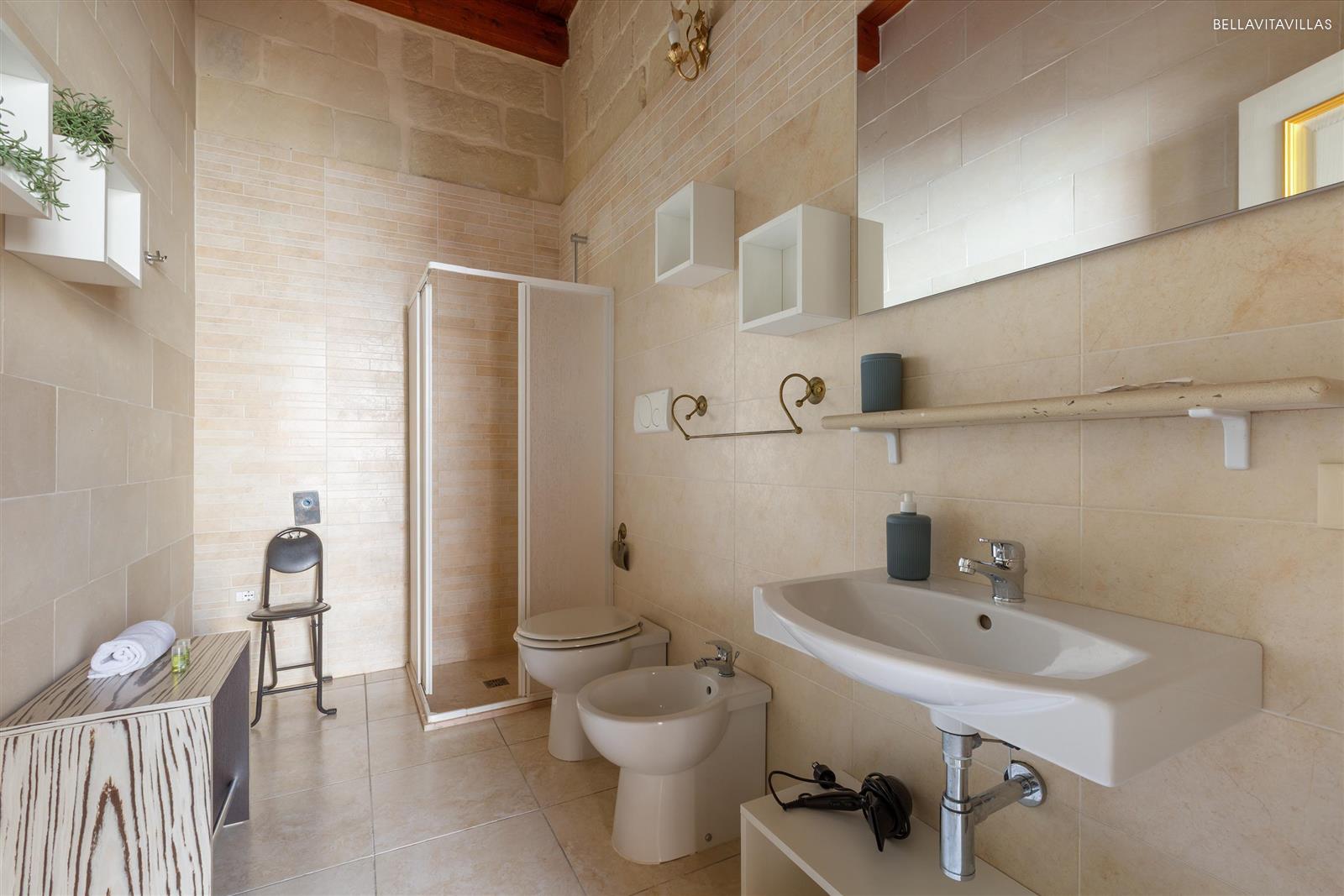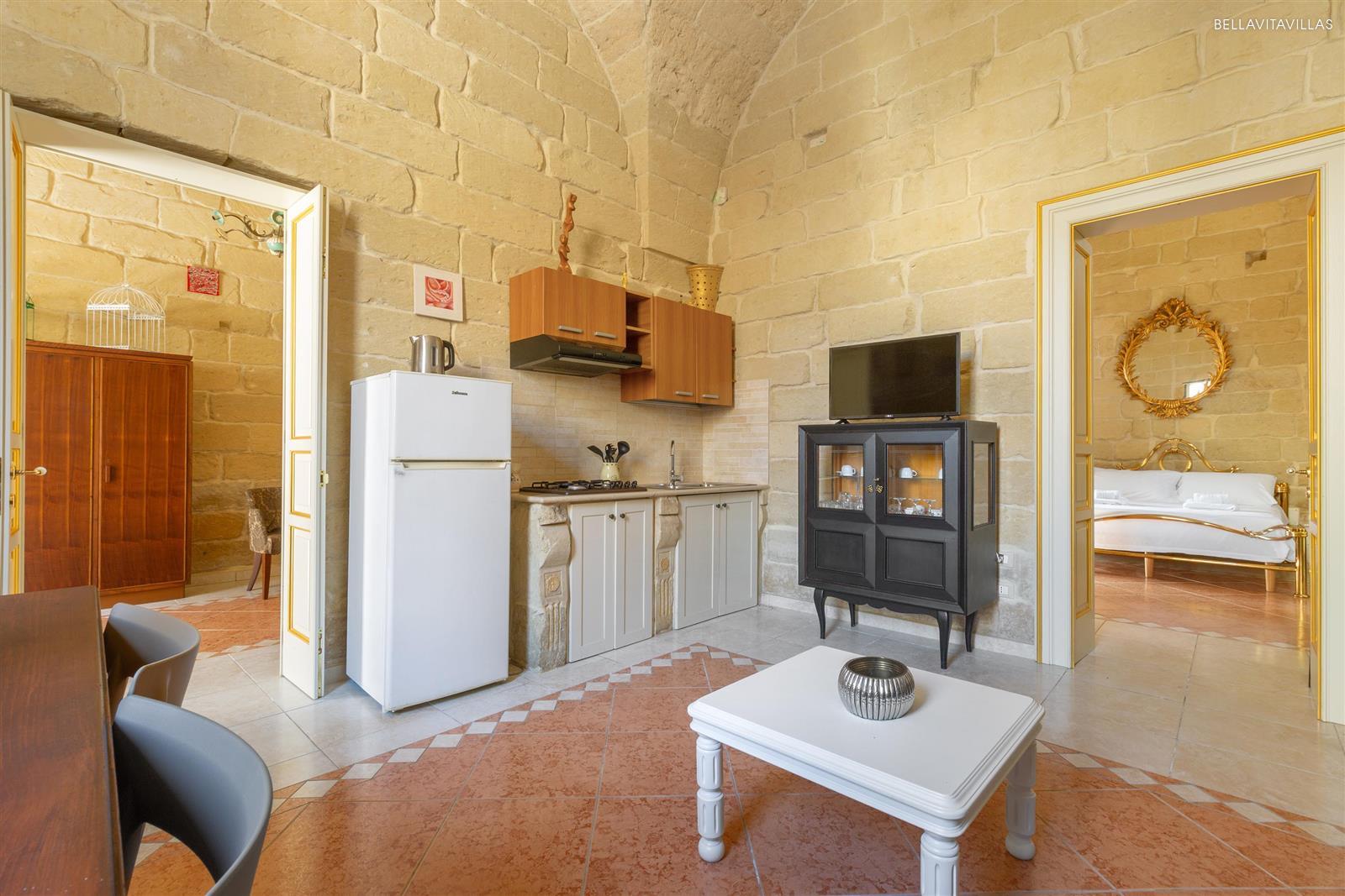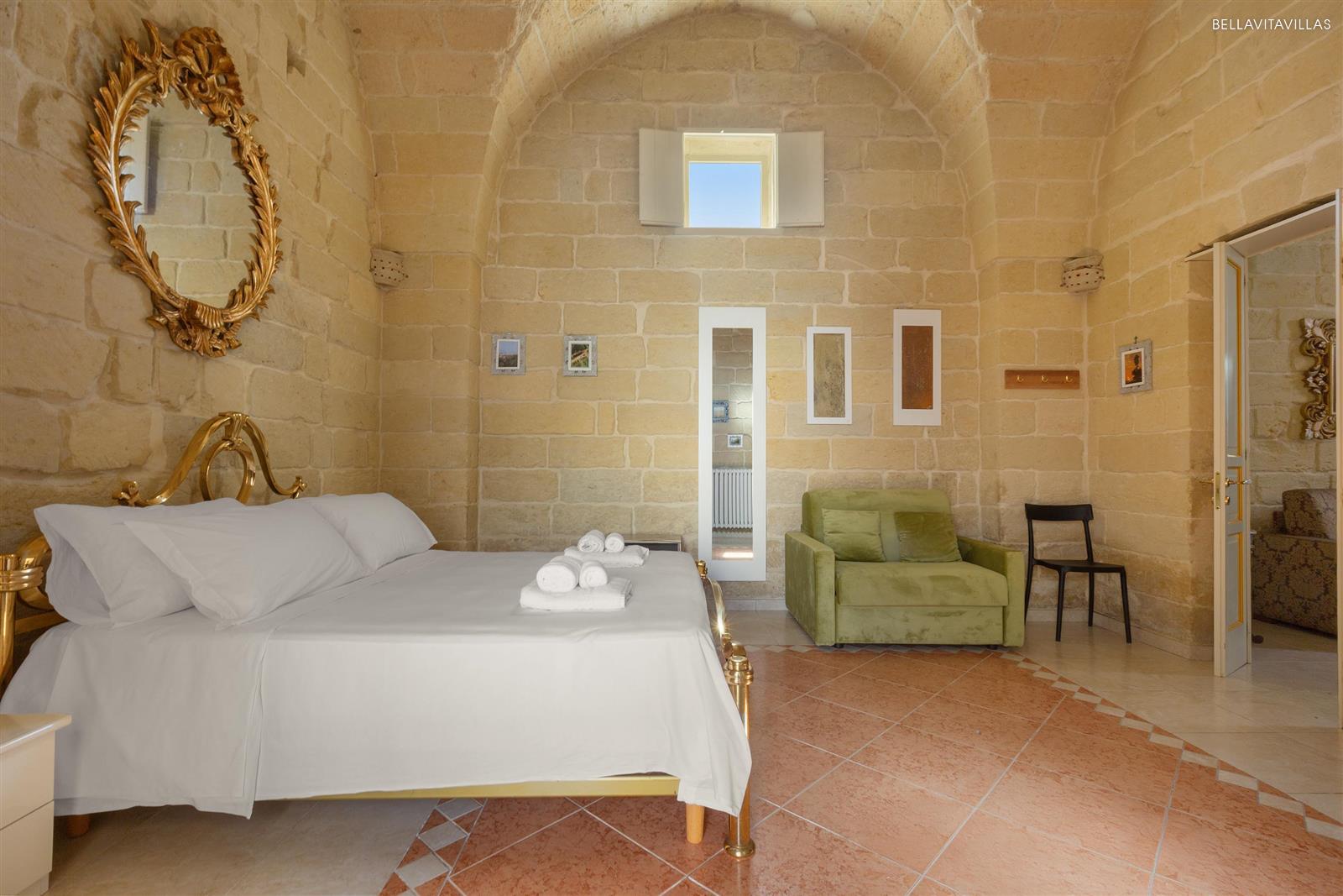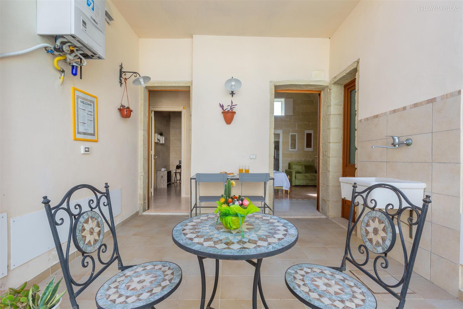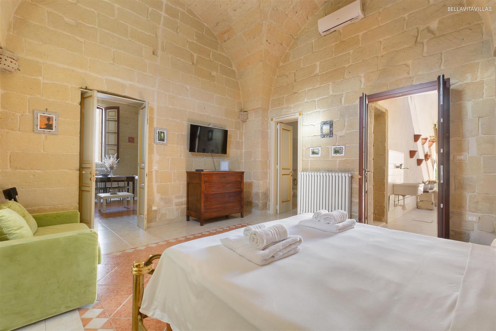 La seconda unità è un trilocale con grandi volte a stella in pietra leccese, composto da ingresso climatizzato con divano letto matrimoniale, soggiorno con cucina a vista e 1 divano letto matrimoniale, 1 camera tripla climatizzata con letto matrimoniale + 1 divano letto singolo, 1 bagno doccia.