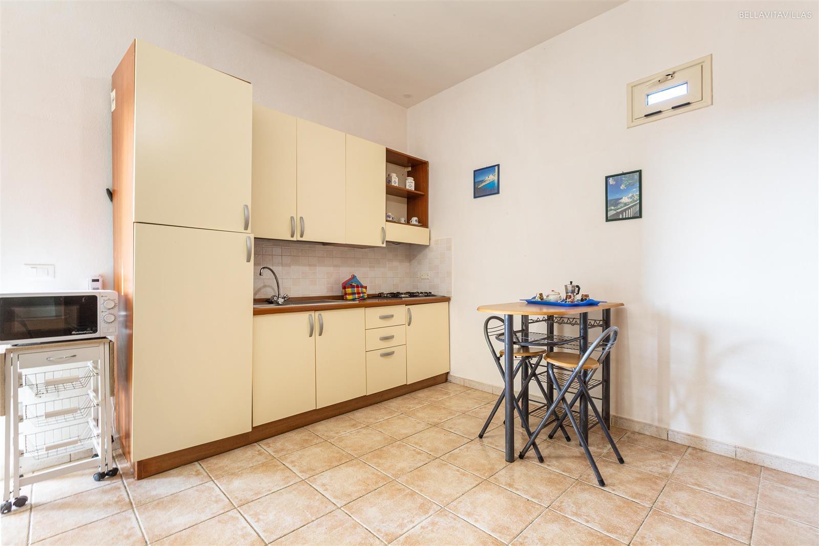 L`appartamento da 3 posti letto è completo di aria condizionata, angolo cottura e bagno doccia. Nel giardino in comune è presente il barbecue. Animali ammessi.