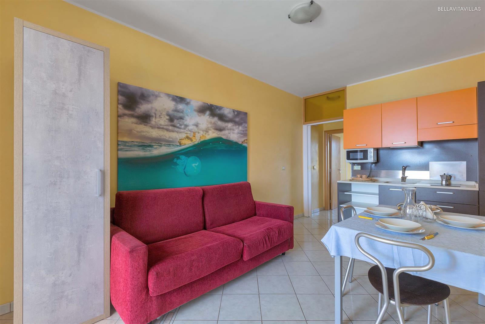 Gli appartamenti della struttura sono tutti bilocali fino 4 posti letto e trilocali fino a 6 posti letto, suddivisi su quattro livelli e dotati di aria condizionata, angolo cottura, tv, internet wi-fi.