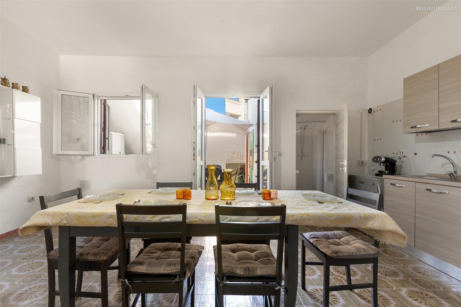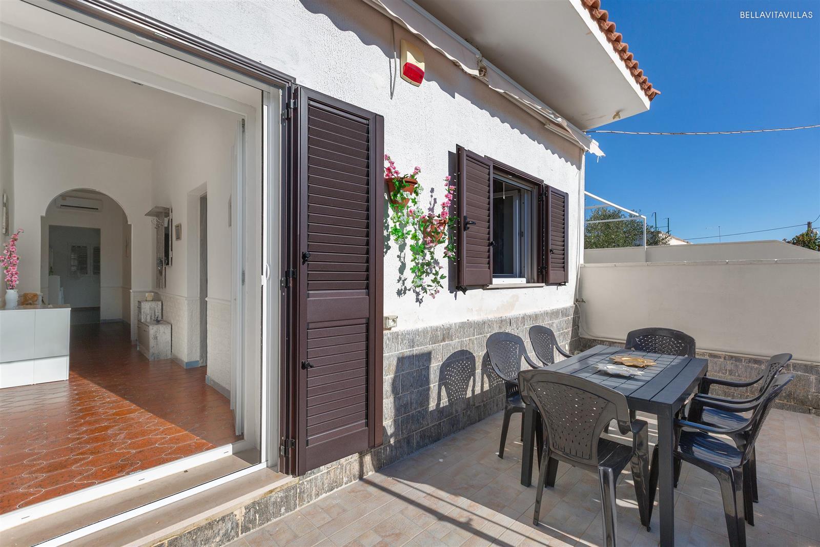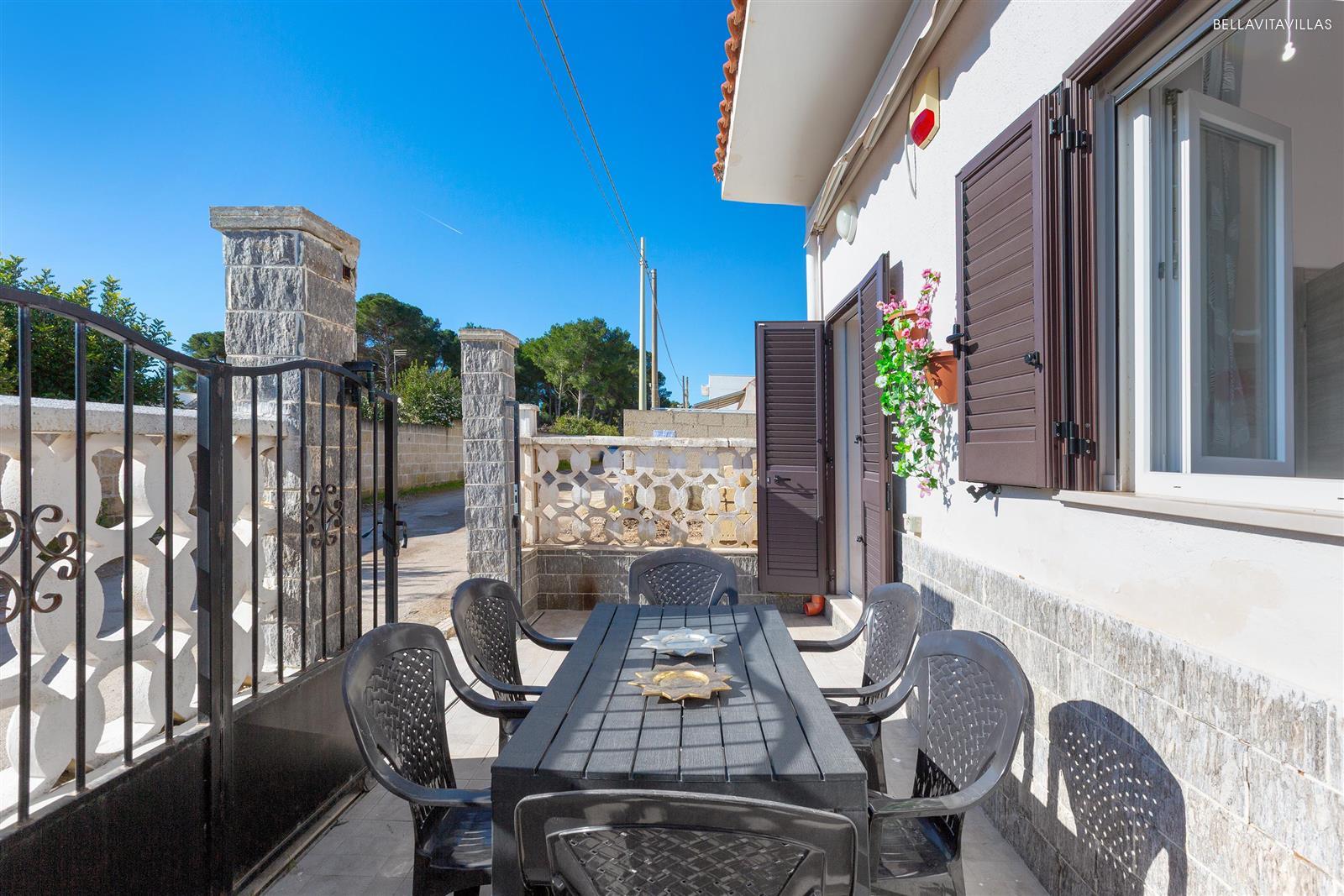 La casa vacanze con spazi esterni attrezzati è completa di moderni accessori come aria condizionata, lavatrice, lavastoviglie, phon, tv, zanzariere, ferro da stiro, forno elettrico, microonde, macchina per il caffè (no cialde), etc.