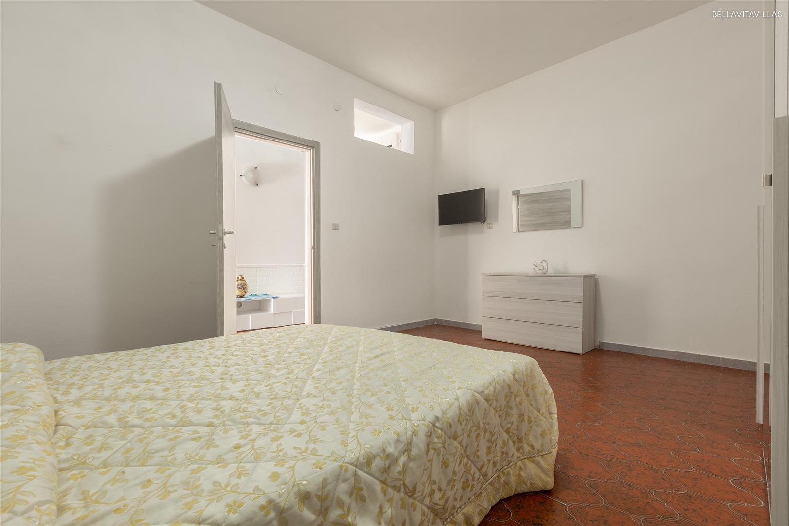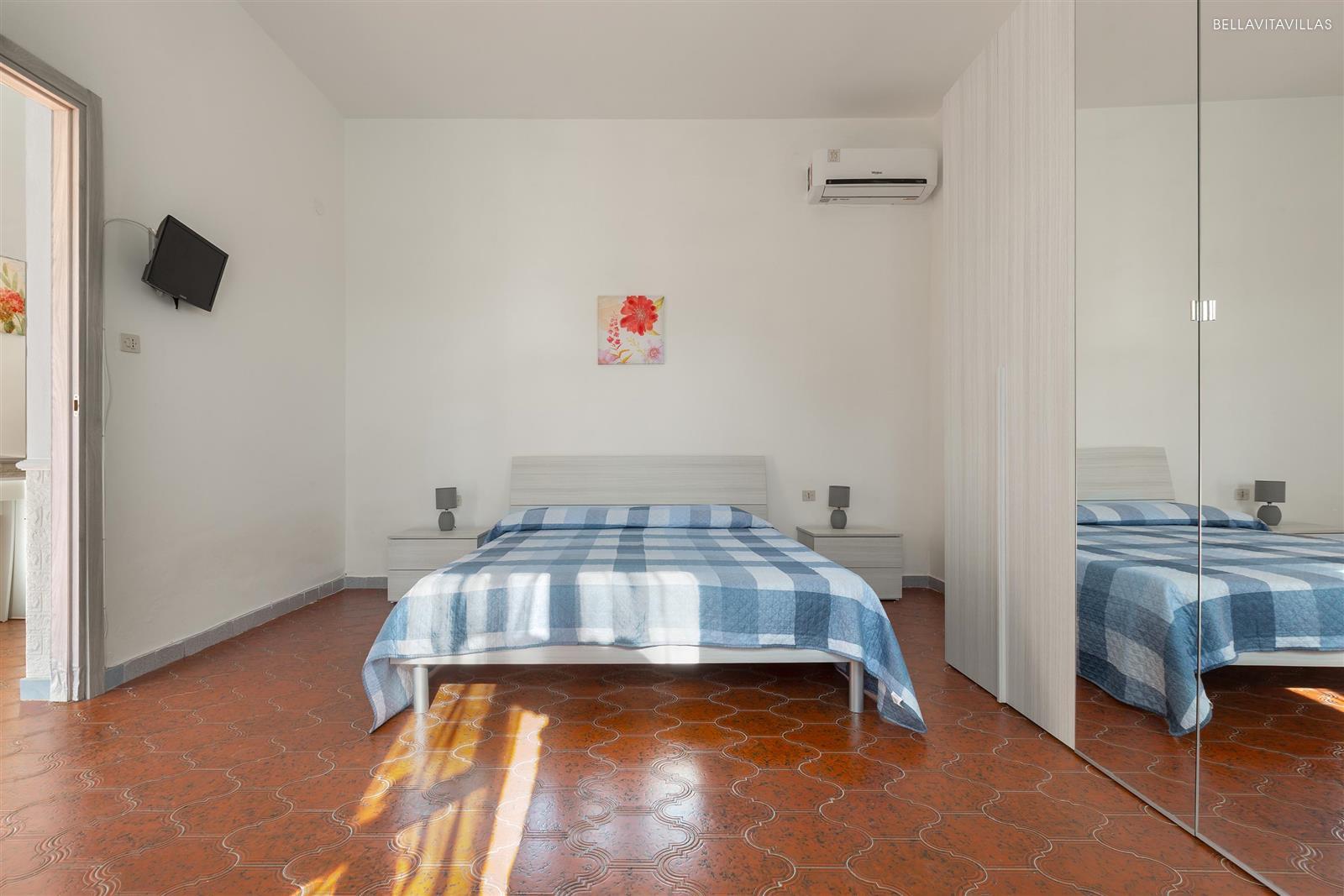 La zona notte è formata da 2 camere da letto matrimoniali, entrambe dotate di aria condizionata e tv, una priva di finestra. Sul retro vi è un altro spazio esterno attrezzato, dove poter trascorrere il tempo all`aperto.
