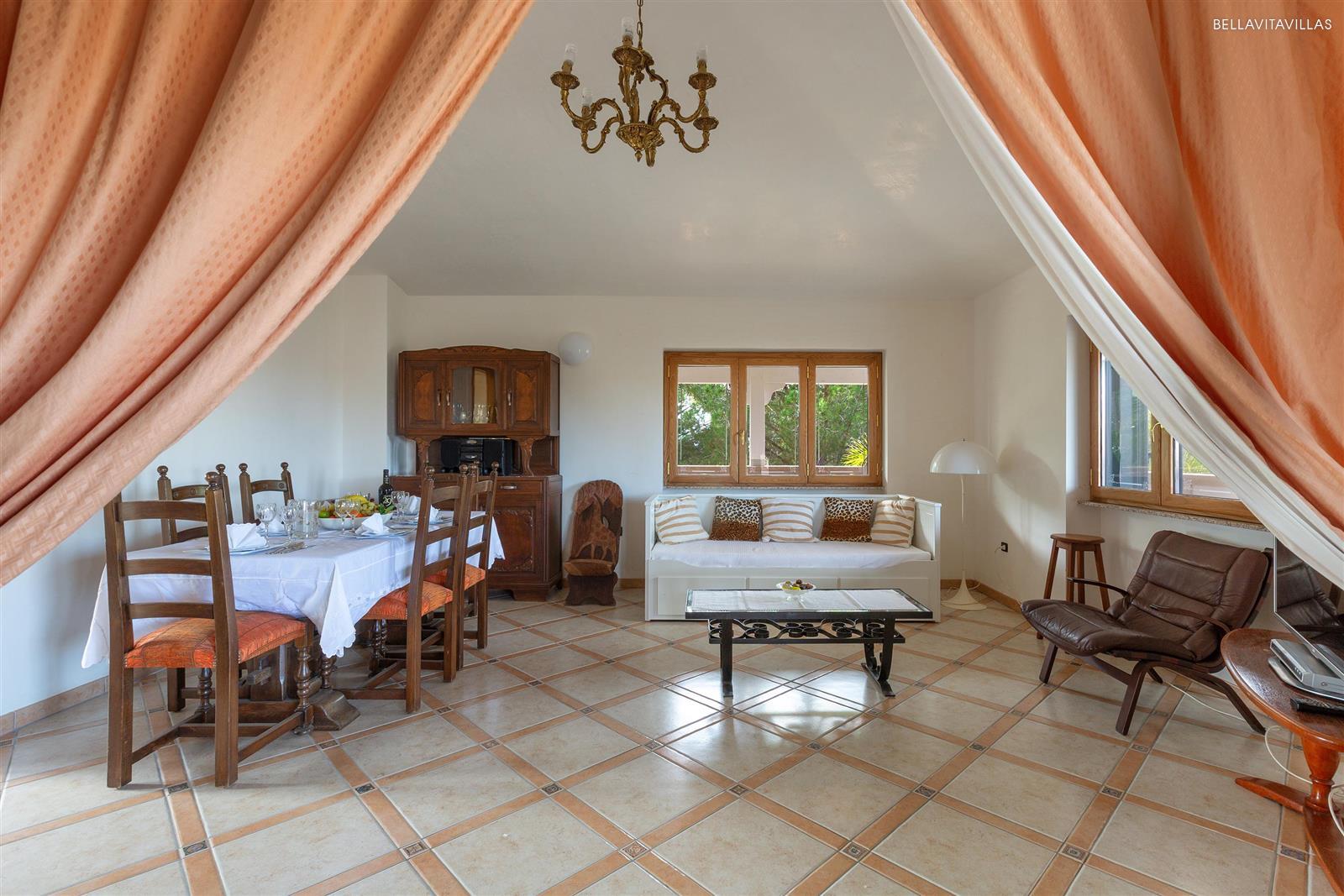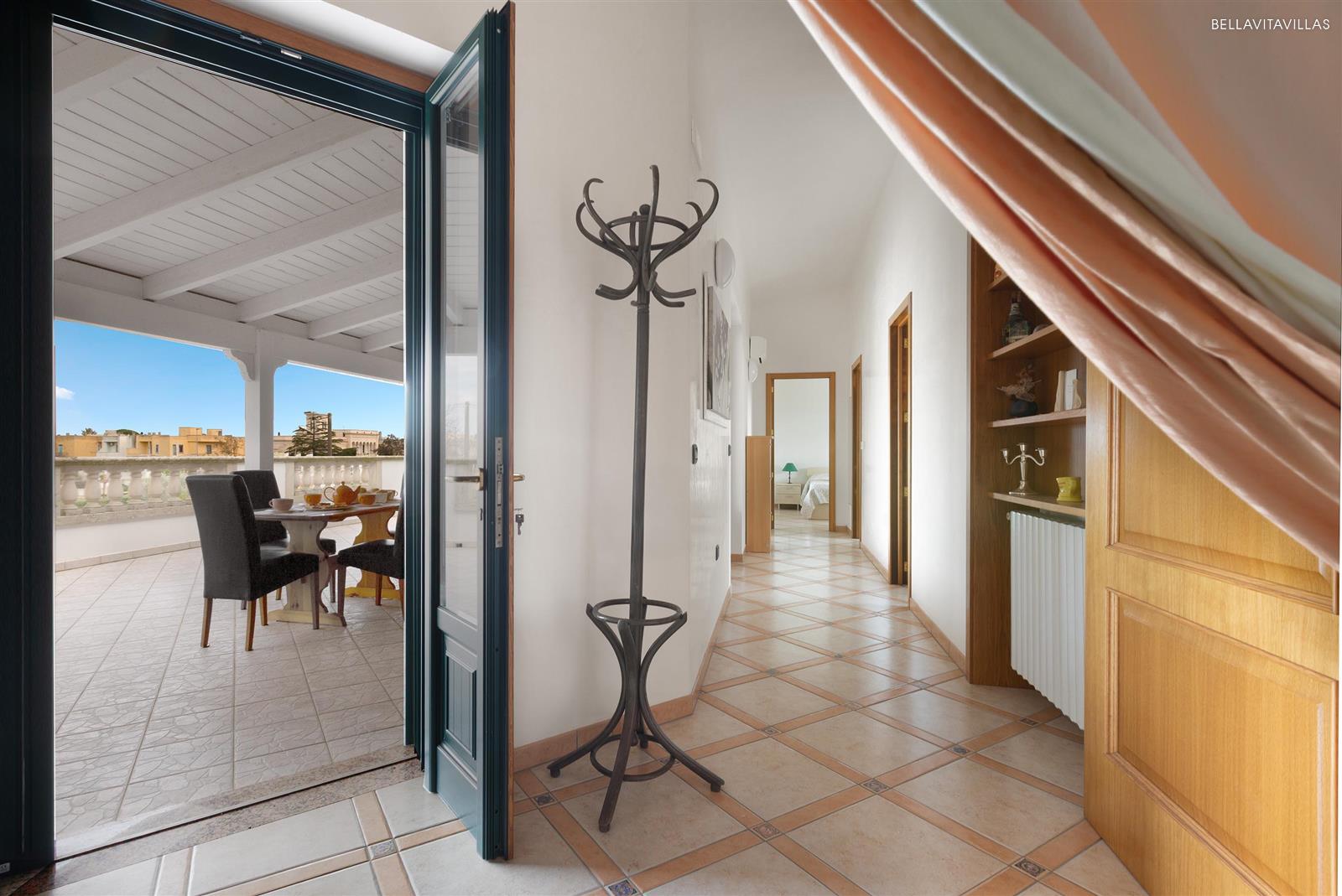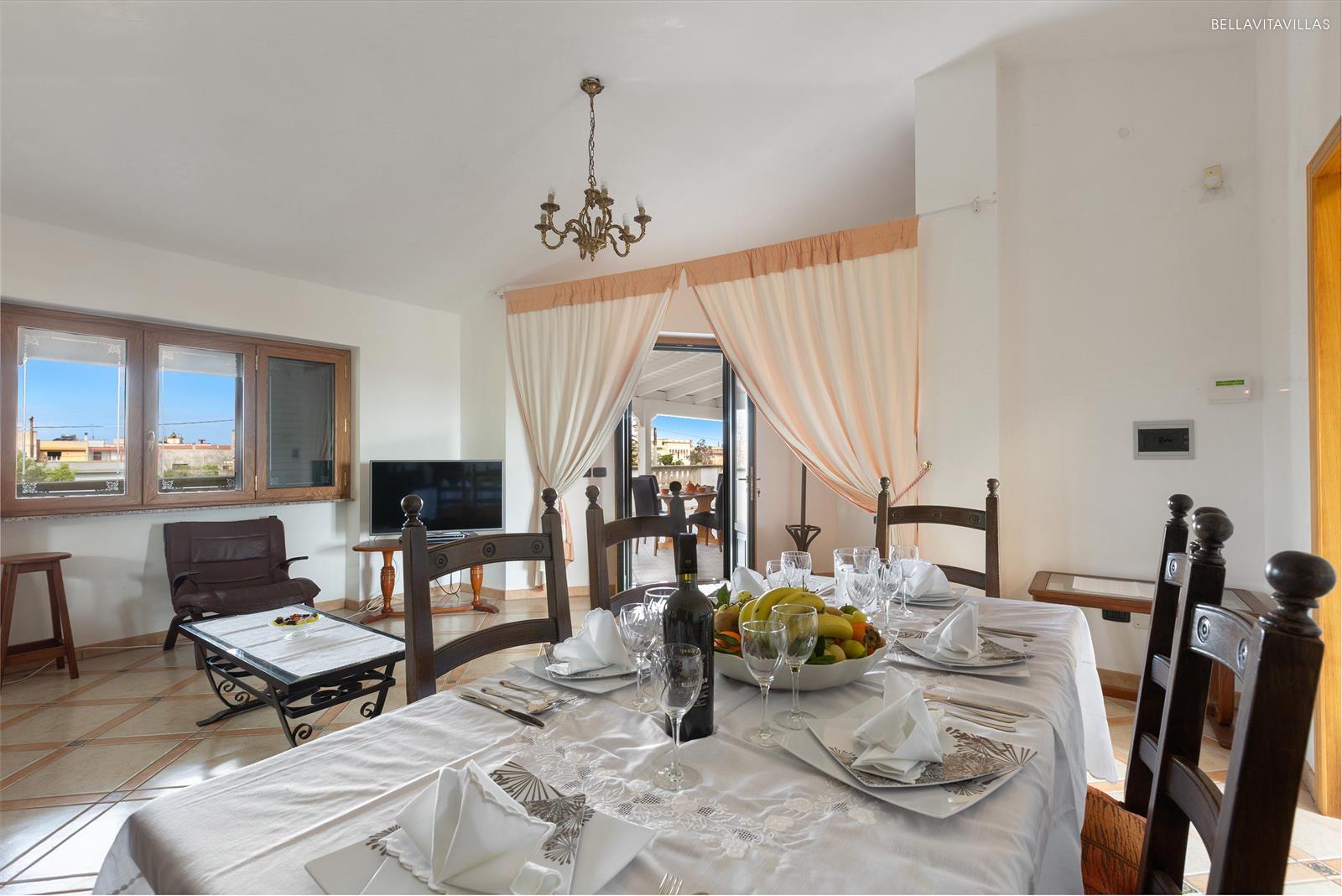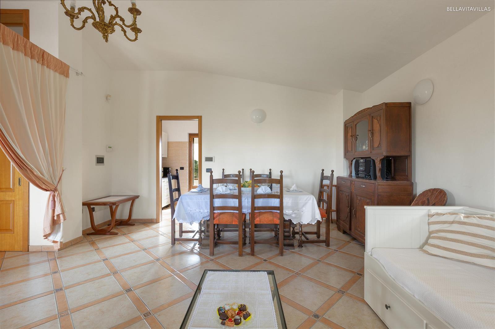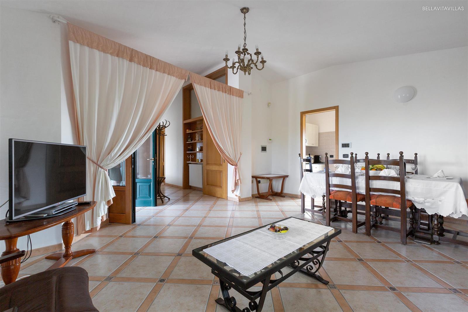 The 6-bed apartment is on the upper floor of the villa, inhabited by the owners, who provide guests with a swimming pool with Jacuzzi, heated when necessary, and all the equipped areas of the large garden.