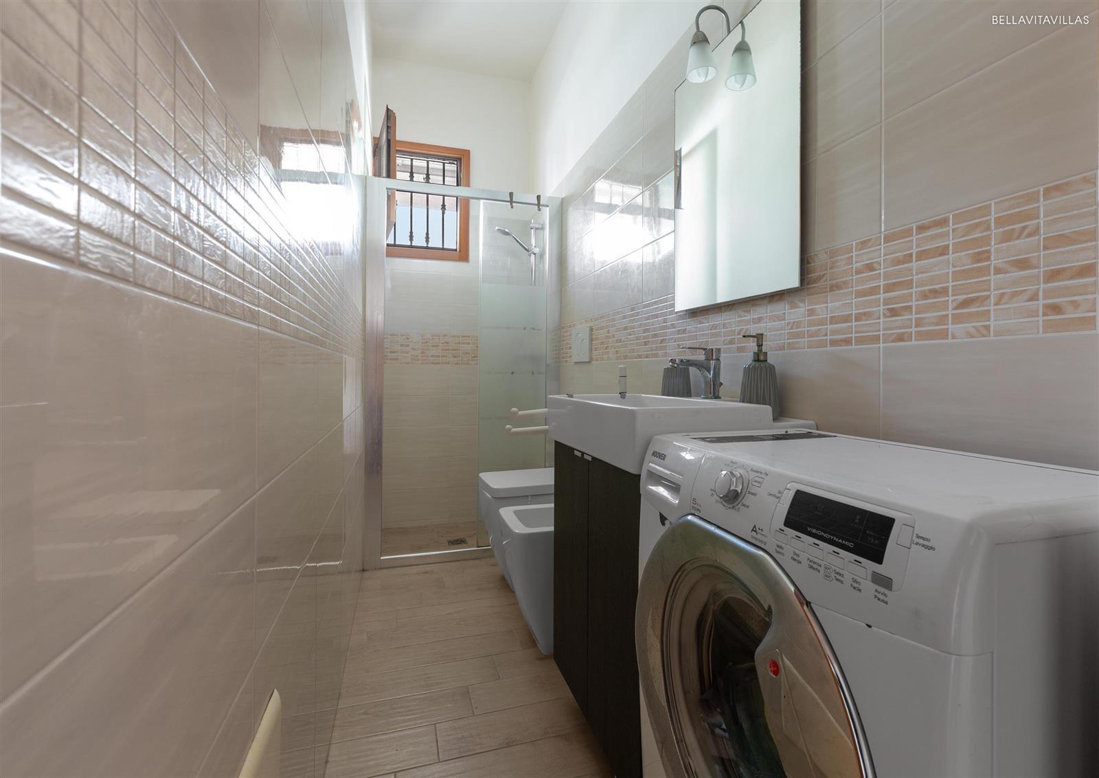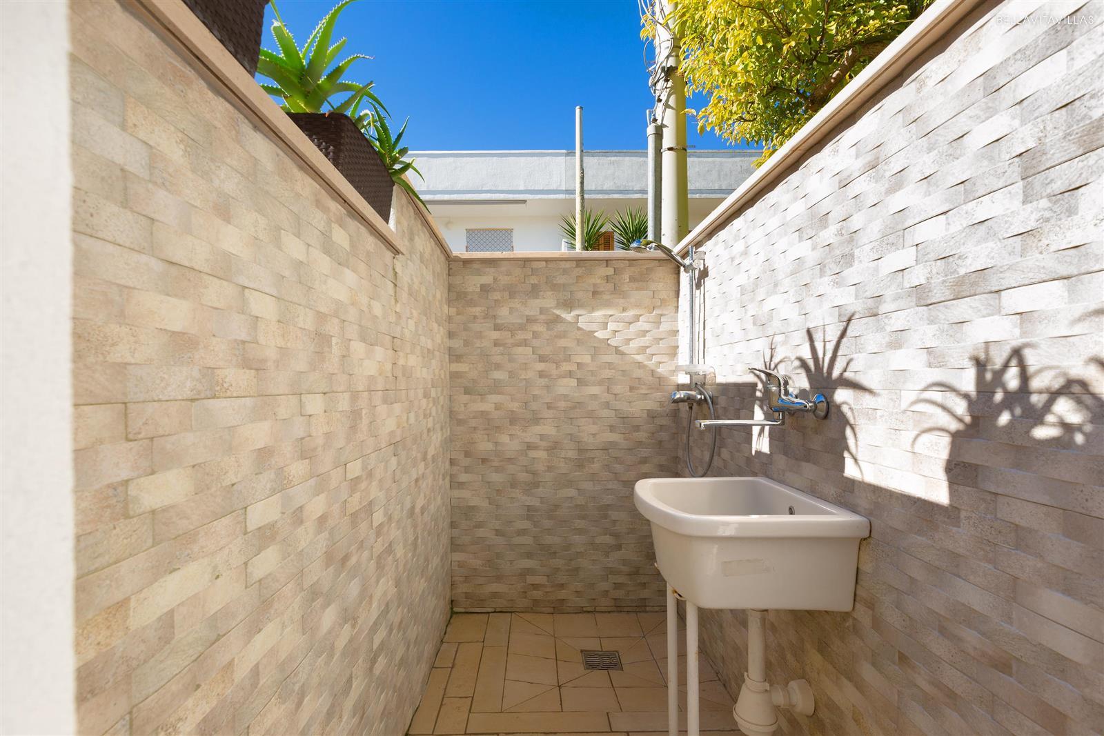 The vacation cottage is equipped with air conditioning, washing machine, dishwasher, hair dryer, smart TV, ironing board, outdoor shower and mosquito nets. On request it is possible to have a crib.