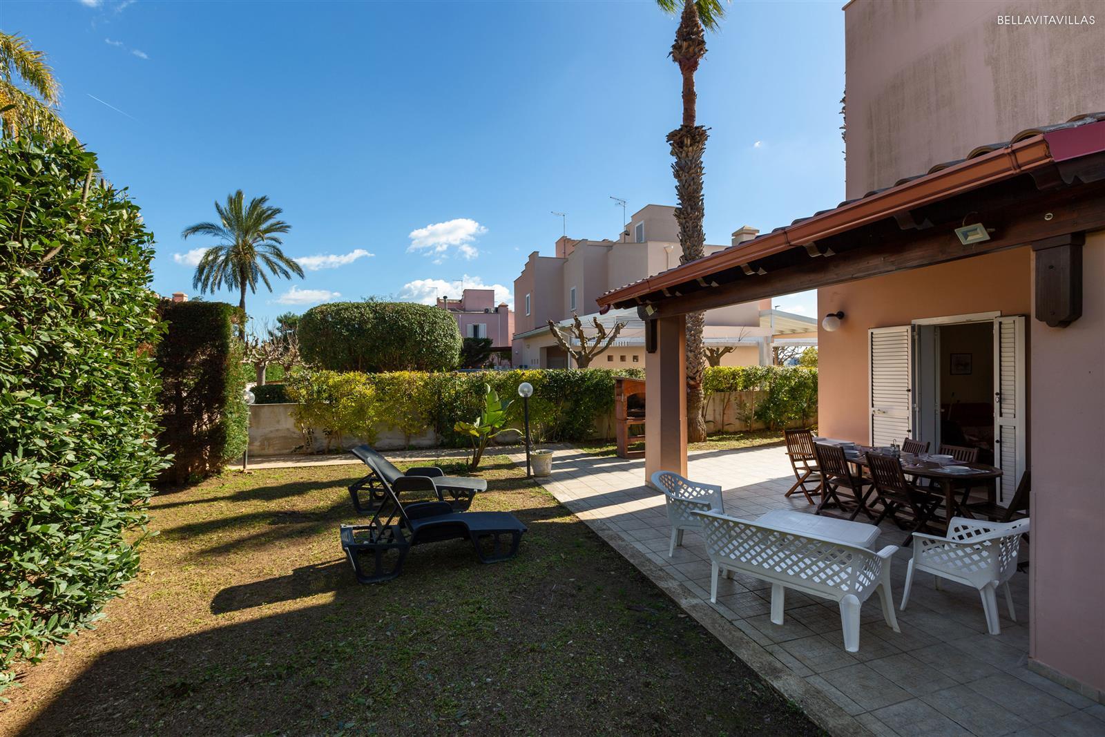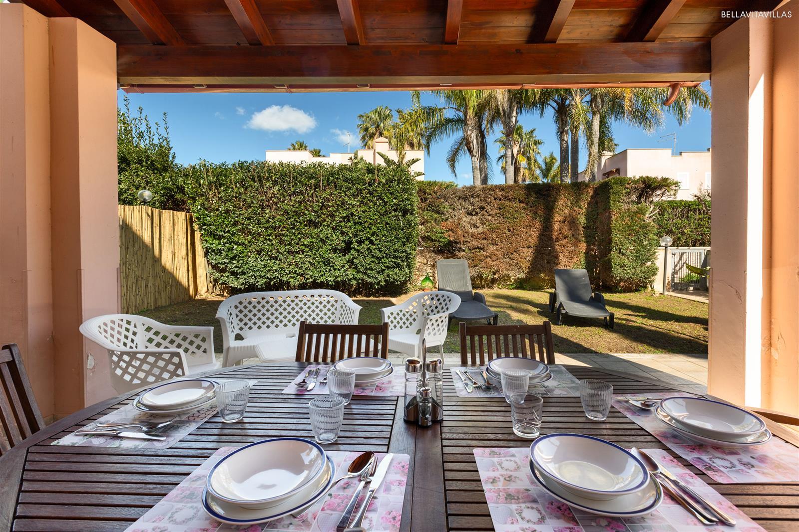 Villa Micelli is a small villa with lush garden, located in a residential complex of townhouses, quiet and guarded both at night and during the day.