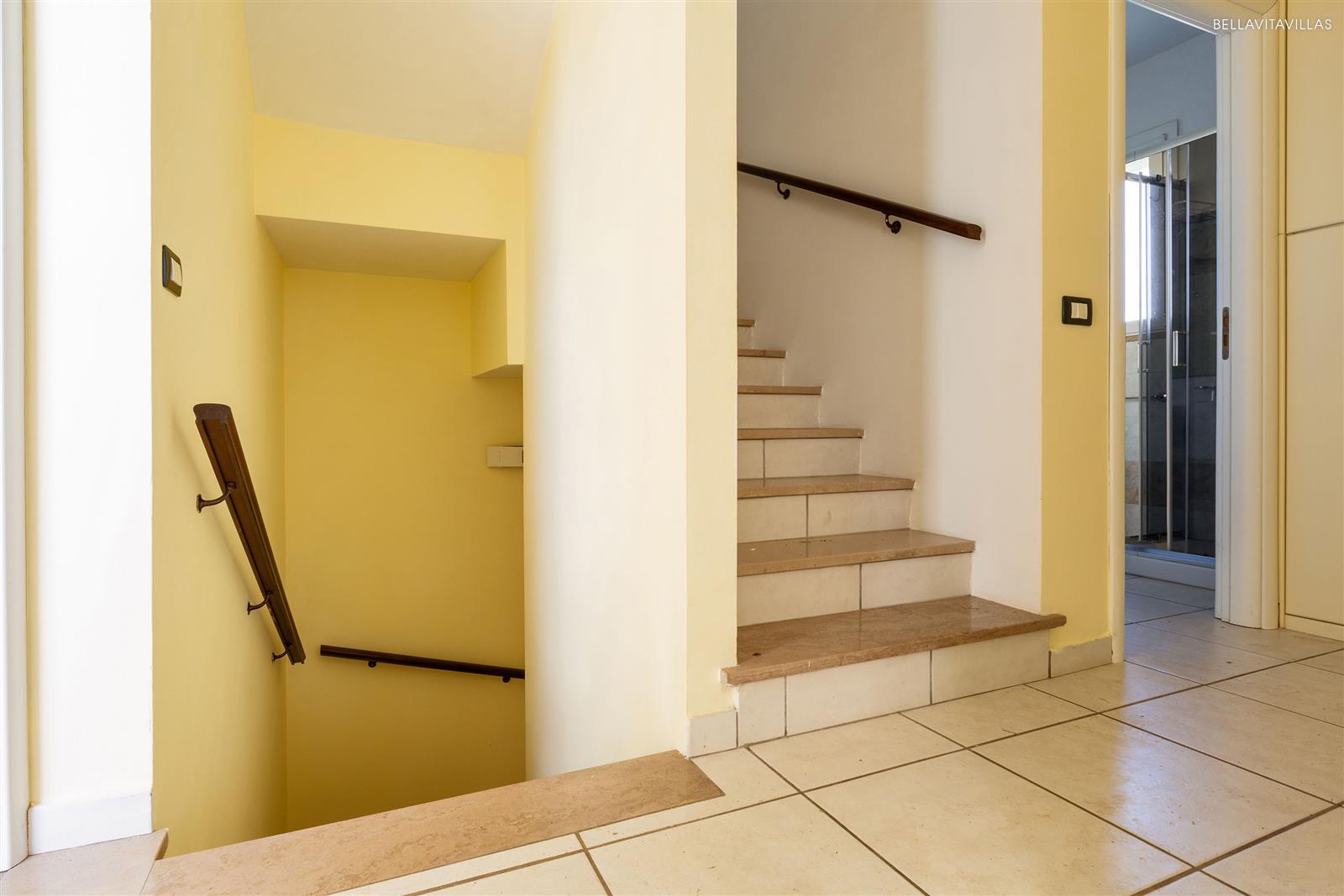The interiors of Villa Micelli are on two levels, connected by both external and internal stairs.